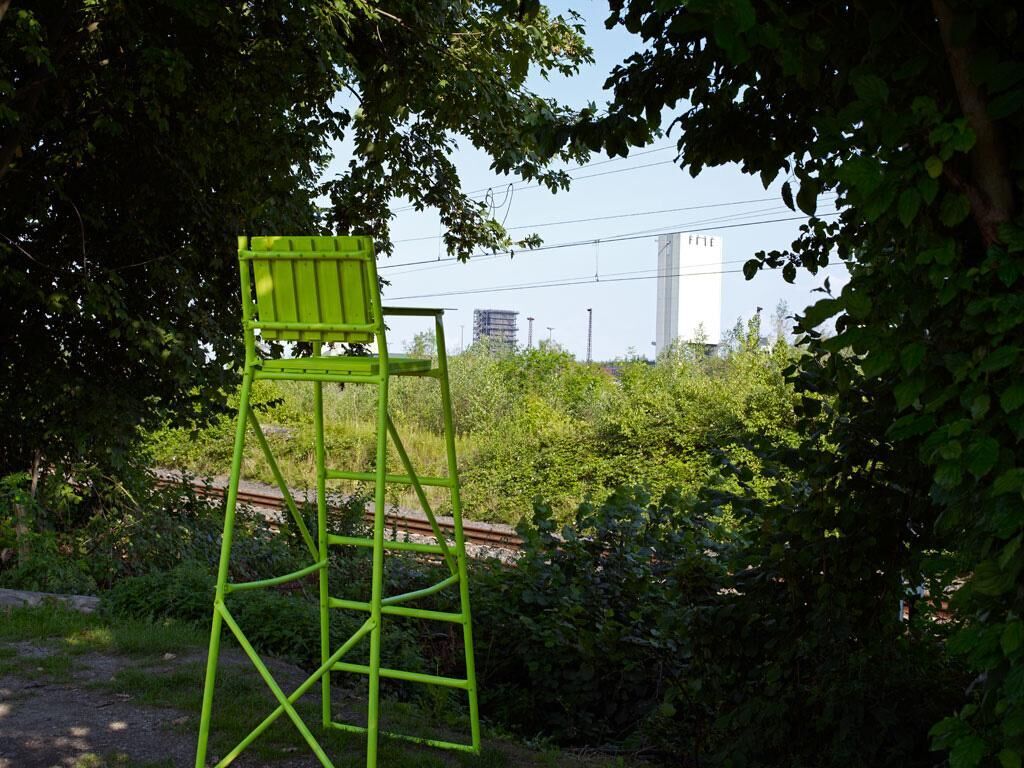 Soundinstallation: Zwei Hochstühle, Kontaktlautsprecher, Soundcollagen mit Interviews zu zwei Orten in Dortmund, zwei Fotografien. KaiserFreiStuhl begegnet zwei Orten in Dortmund. Die ehemalige Kokerei Kaiserstuhl und das Areal um den Freistuhl zwischen Hauptbahnhof und Innenstadt stehen für zwei Zustände: industrielle und postindustrielle Zeit. Während Kaiserstuhl, die modernste Kokerei der Welt, abgebaut und nach China abtransportiert wurde, wurde am Freistuhl zeitgleich mit chinesischem schwarzen Marmor das höchste Bürogebäude Dortmunds errichtet. Zwischen Schwerindustrieruinen und neuen Skylines tun sich Freistellen auf, die neu zu besetzen sind. Herzstück der Installation sind zwei für die Stühle entwickelte Klangkompositionen, eine Verbindung aus Geräuschen der Orte aus Vergangenheit und Gegenwart und Interviews mit Personen, die auf besondere Weise mit diesen Orten verbunden sind, wie etwa den Architekten des Bürogebäudes oder den Schrebergärtnern neben der ehemaligen Kokerei. Durch die an den Stühlen angebrachten Kontaktlautsprecher werden die Sounds nicht nur hörbar, sondern auch körperlich erfahrbar gemacht.