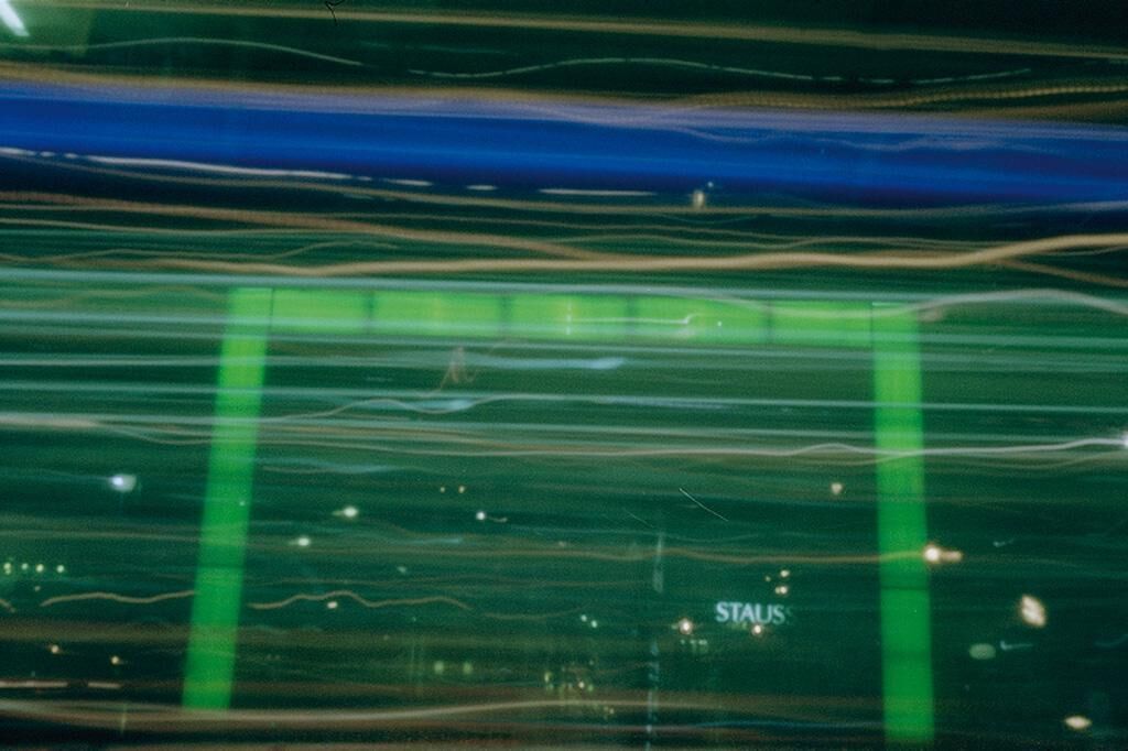 Eine Serie von Belichtungen jeder Fahrt meines Autos in je einer Aufnahme, deren Belichtung die Länge der zurückgelegten Strecke hat. Dadurch ergeben sich Langzeitbelichtungen, die einem Zufallsprinzip folgen. Sie erfassen das Transitorische und stellen im Bild auf Dauer, was während der Fahrt vorhanden war und komprimieren die Umgebung im Vorbeifahren auf einem einzelnen Negativ. Durch diese Reduktion überlagern sich verschiedene Umgebungen. Durch die unterschiedliche Schnelligkeit des bewegten Fahrzeuges werden manche Informationen der Umgebung mehr oder weniger zum Vorschein gebracht. # 14 Böblingen - Hulb 4,3 m/s # 4 Köln - Bensberg 14,24 m/s # 3 Gelsenkirchen - Köln 22,6 m/s # 10 Köln - Böblingen 30,27 m/s