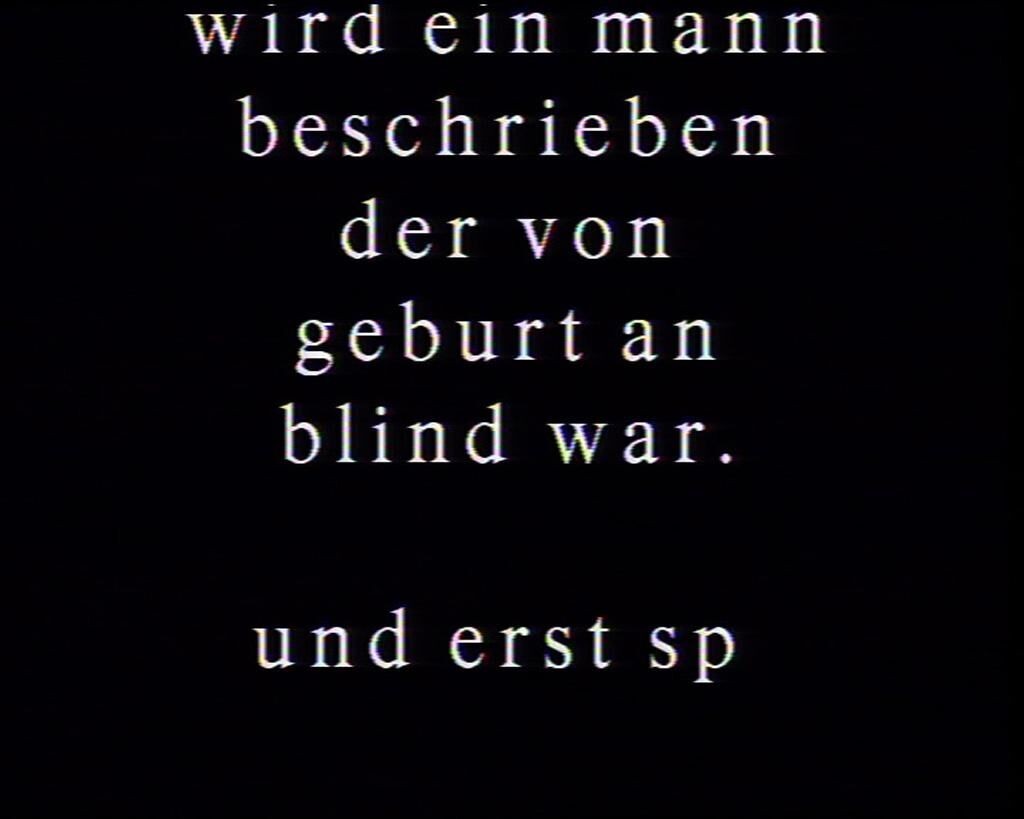 „Über Erzähler“ nähert sich Erzählern und dem Erzählen in drei Annäherungen. Die erste zeigt Interviews mit drei Erzählern unterschiedlicher Gattungen, die über ihre Arbeit sprechen und somit für den Betrachter ihre je eigene Form des Erzählens reflektieren. Über den zweiten Monitor läuft geschriebener Text, der auf rhythmische Art einen Gedankenraum um das Feld der Wahrnehmung und Kommunikation öffnet und Zitate und Gedankenfetzen miteinander verbindet. Den Kern der Arbeit bildet ein Video, das zwei Erzählstränge ineinander verschachtelt: Eine dokumentierte Live-Performance wird durch einen weiteren Teil ergänzt, der dem Akt der Performance rückblickend mittels Fotos, Filmstills und Objekten nachspürt, und so über die eigenen Begrenzungen des Ausdrucks nachdenkt.
