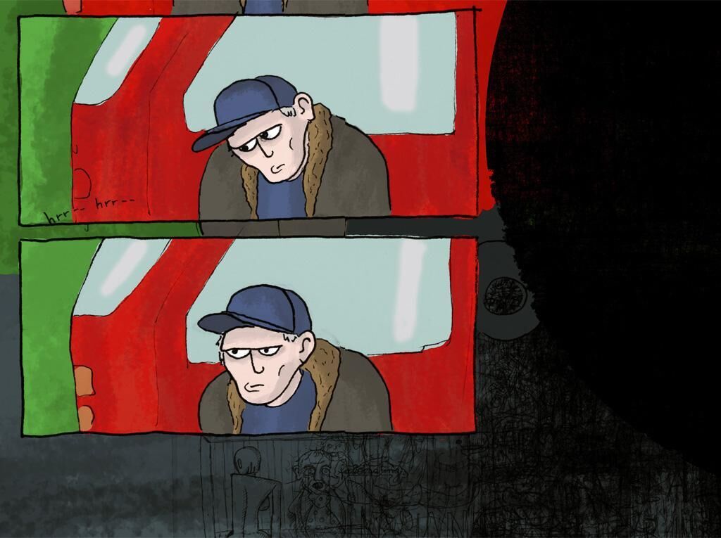 [aɪ] ist ein Comic, das in drei Tableaus die Geschichte einer surrealen Irrfahrt eines Trampers erzählt. Die Tableaus werden in Leuchtkästen präsentiert, die in nicht eindeutig narrativ-linearer Lage an den Wänden hängen. Es ist für den Betrachter nicht klar, wo er die Geschichte zu lesen beginnen soll. [aɪ] wird an einem Unort ausgestellt, also in einem Belüftungs- oder Kellerraum, einem Treppenhaus oder einem schwer zugänglichem Hinterhof. Es ist dunkel, so dass das Comic in den Leuchtkästen die einzige Lichtquelle ist und – hier dem Medium Kino näher als dem Printmedium Comicbuch – den Raum in die Farbe der Geschichte taucht. Das Comic wird untermalt mit einer Klanginstallation, die dem Unort entspricht. Die Musik ist immer dezent und atmosphärisch, so dass sie dramaturgisch jeden Part der Geschichte untermalen könnte. Es ist unklar, ob hier eine komplett fantastische oder eine nur leicht gebrochene, reale Geschichte erzählt wird. Die Umstände der Präsentation des Comics lassen das mysteriöse Gefühl aus der Geschichte in die Realität schwappen.