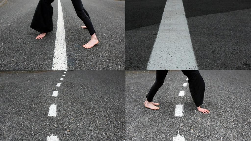 Drawing a line marks a distinction and thus defines a border. The border itself however can only be experienced when it is trespassed, it always contains its transgression, its suspension or its displacement. Passing a border as a mental as well as a physical experience is a movement which requires the transformation from an existing state to a modified and new state.The work is an attempt to observe and examine the process of transgressions related to self imposed limits as well as obstacles lying in the way. The expression of body experience is referring to the work of Xavier le Roy in his piece ""self-unfinished"". Transforming the body in two similar albeit not identical parts enables the self-experience to move on both sides of the border at the same time.