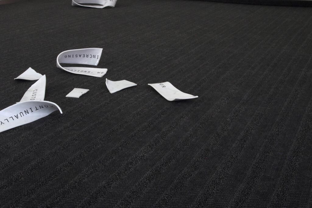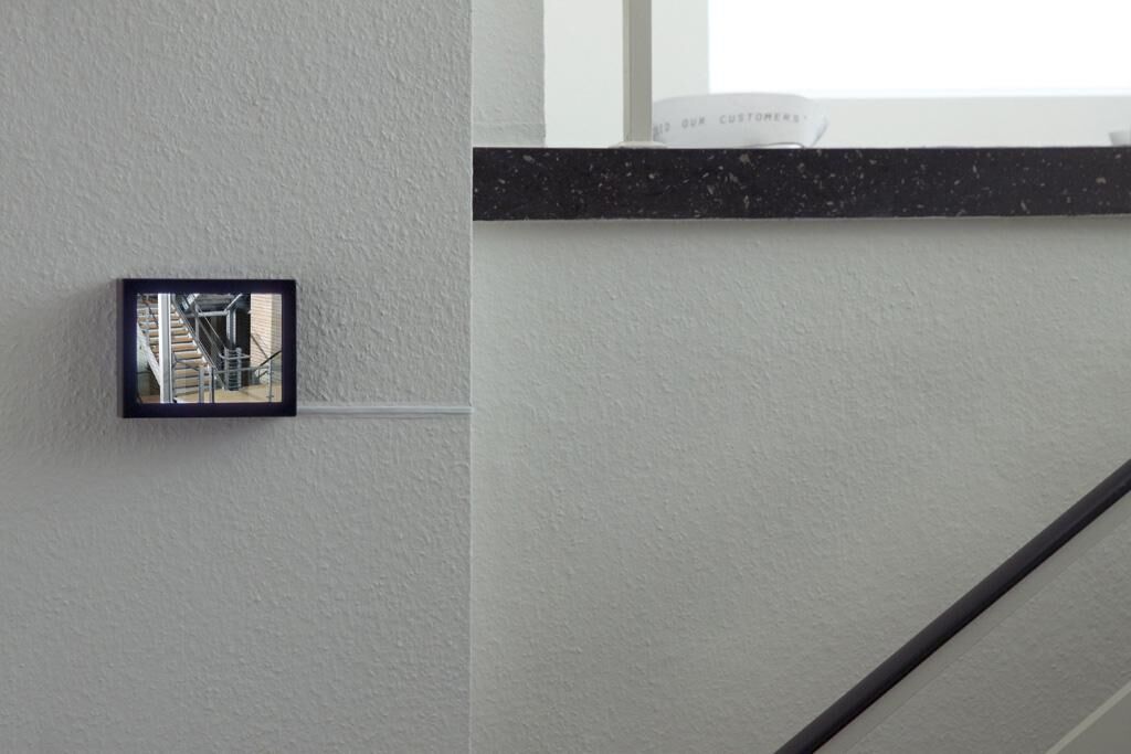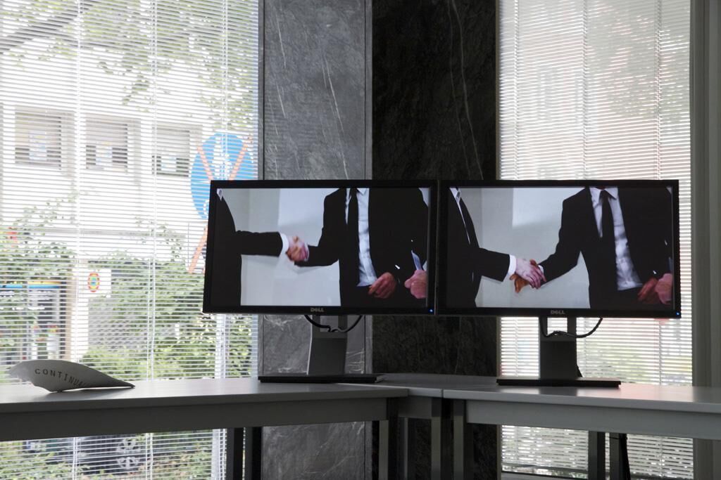 Die Installation „unfreie Bearbeitungen“ untersucht Text- und Video-Repräsentationen der Unternehmenswelt, ausgehend von Stockvideomaterial der Firma Getty Images.