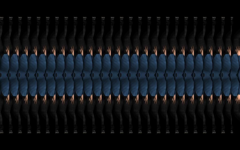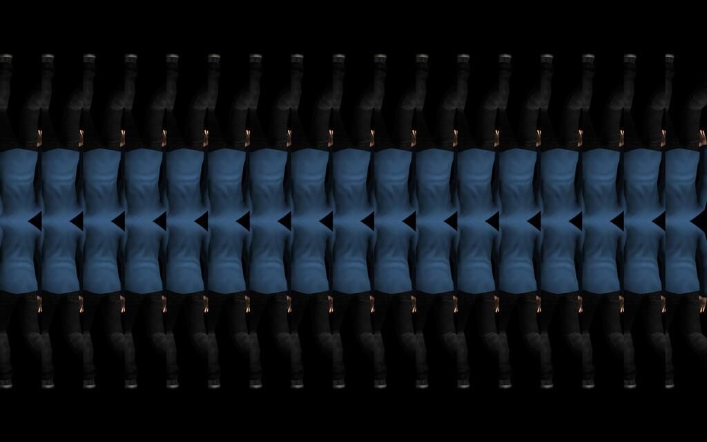 The work is a interactive video-installation, developed over a video-game platform. The spectator is invited to interact with the piece through a joystick, by creating movement in the human male that stands in an empty black space. The avatar can walk in any direction and get duplicated, like in a sequential arrangement of mirror images, creating a distortion that turns the scene into an abstract illusion. The duplicated images fade when the player walks back the same route and gets to the starting point. The walk or walking action, theme in art of all time, has always been used to emphasize the relationship of physical space and context to a particular individual or group. The way to go is always seen as a step towards a state other of the physical and spiritual experience. However, many times the way and the journey itself are more important than the goal to reach. In this tradition the work is a metaphor about the nonsense the idea of progress and advancement - ideal rooted in the birth of consumer societies. The work can also be seen as an image of the unit that is duplicated, cloned, and is lost in the abstraction of the masses of itself. It is the illusion of representation of an individual, a space, a time, a road, a search.