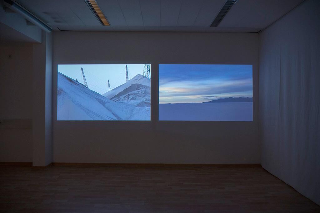 Die Doppelprojektion 'The balance of matter' lässt filmische Beobachtungen verschiedener Orte in weit voneinander entfernten Ländern nebeneinander ablaufen und aufeinander folgen. Im Zentrum der Arbeit steht das Thema der Transformation: Werden, Vergehen und das Verhältnis des Menschen zu Wirtschaft, Natur und sozialem System werden in ausgewählten Kontexten genauer betrachtet. Ohne Anfang und Ende führt der Film mit ruhigem, abtastendem Blick durch reale und imaginierte Wüsten, Regenwälder und schwarze Löcher, begegnet den Städten von morgen, stößt auf Abwesenheit und Spuren von Zivilisation. Durch das direkte Nebeneinander verschiedenster Szenen entsteht ein Gefühl von geographischer und zeitlicher Unbestimmbarkeit.