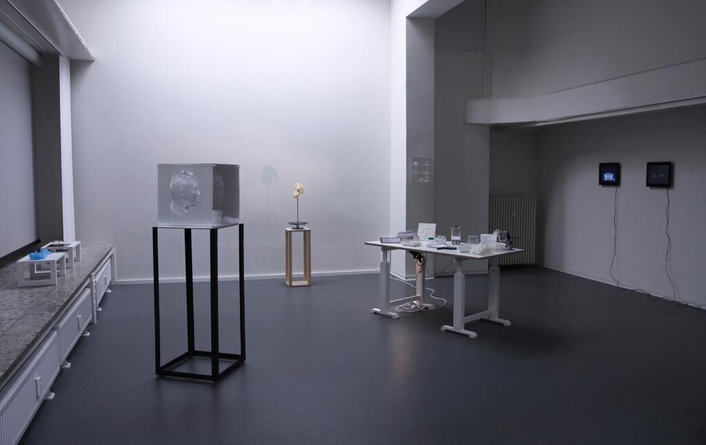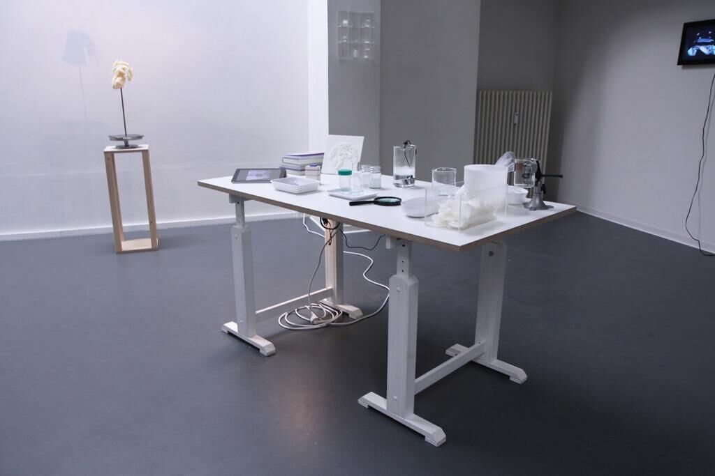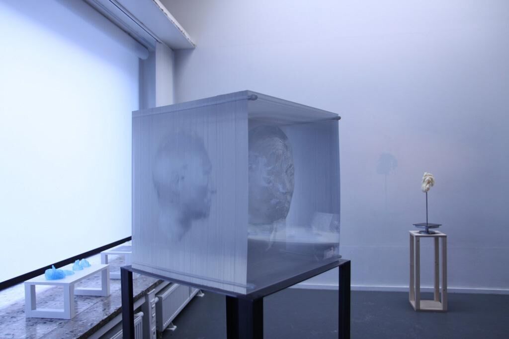 “I am an Artifact“ is an installation that was developed with the participation of two laboratories. Firstly, my whole body was scanned with magnet resonance imaging (MRI) to obtain digital information of my body in the department of radiology in Düsseldorf Germany. This information was used to create the work with the help of a medical imaging software, a 3D printer, a laser cutter and at least in form of manual sculpting. Secondly, my forefinger was recreated out of a material called ‘Aerogel’ at the institute of materials physics in Cologne Germany. This special material is known as the lightest solid in the world. This work has begun as a theme with the basic assumption that I am an artifact. The meaning of the artifact as something that humans have done and made, enabled me to unplug my body from nature. Another meaning of the artifact, namely, as an error or as an unexpected result in a computer system appeared on the course of the work