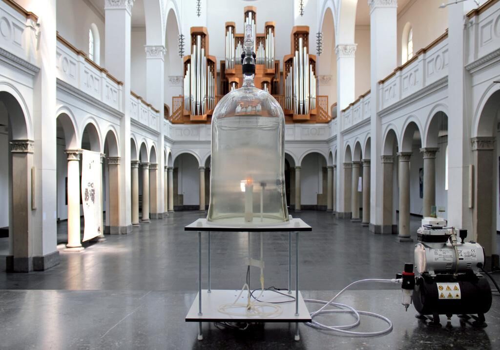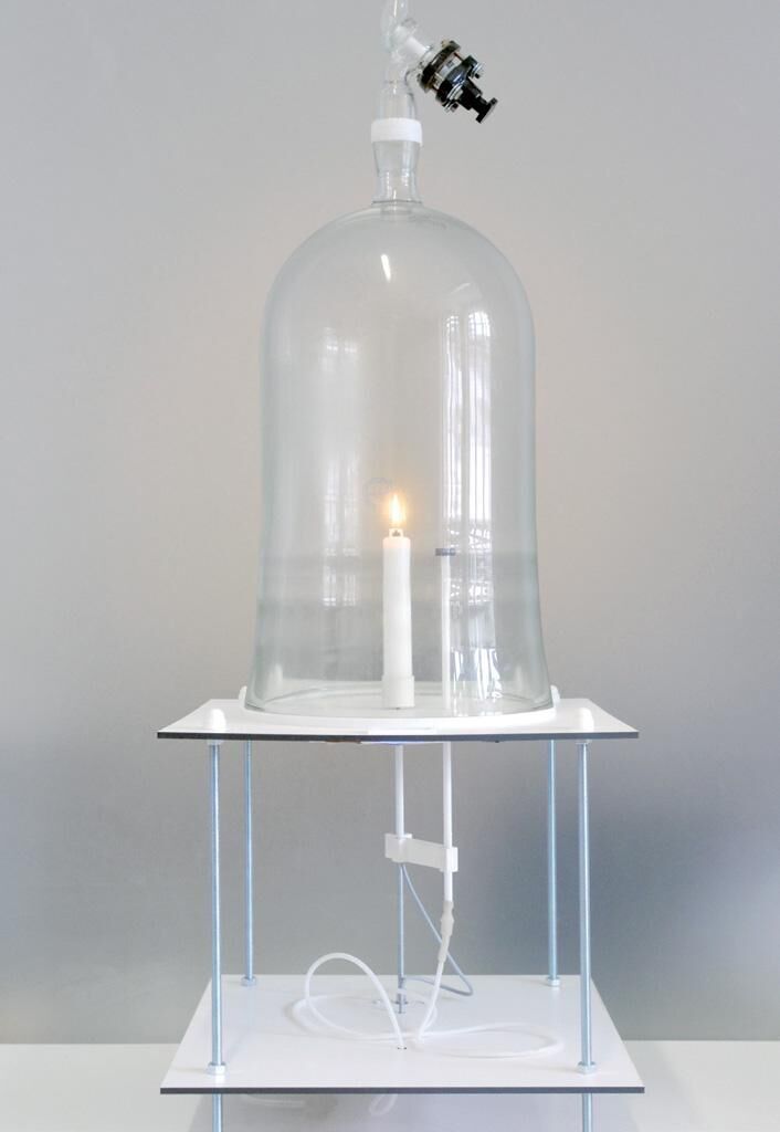VANITAS MACHINE stellt eine Kerze ins Zentrum einer Maschinerie, um sich mit dem Wunsch nach ewigem Leben und dem Potential lebensverlängernder Maßnahmen auseinanderzusetzen. Als eines der klassischen Vanitas-Symbole erinnert eine brennende Kerze an die Vergänglichkeit des menschlichen Lebens und den unauflöslichen Zusammenhang von Material und Dauer. VANITAS MACHINE schafft eine zeitgenössische Übersetzung dieser Symbolik – anhand einer Kerze, die mittels gezielter technischer Eingriffe und im Rahmen eines experimentellen Versuchsaufbaus stark verzögert abbrennt. Indem die Sauerstoffzufuhr in Abhängigkeit von der Brennintensität präzise dosiert wird, kann der „Metabolismus” der Kerze reguliert und somit deren „Lebensdauer“ beeinflusst werden.