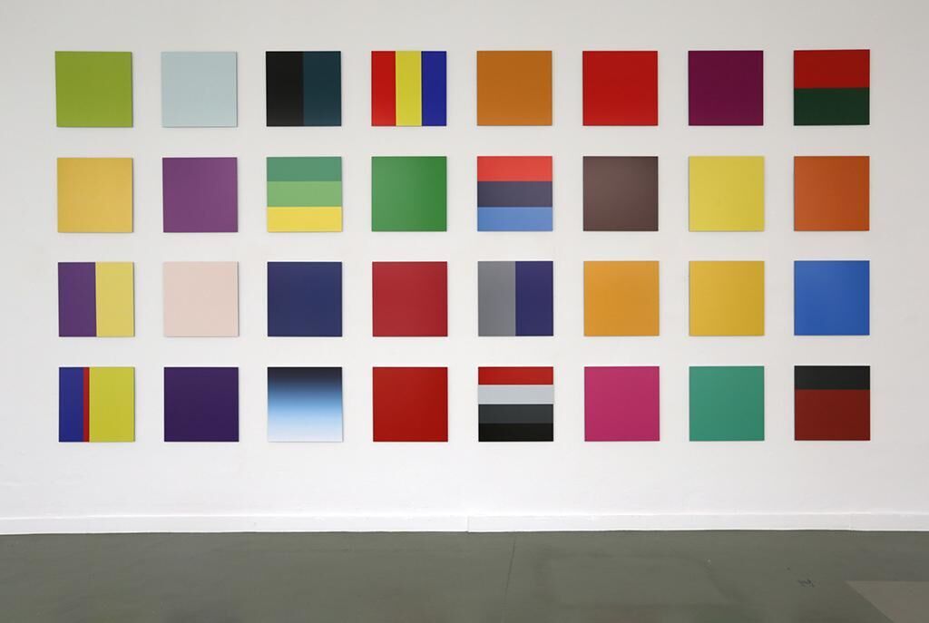 Die Arbeit “Colourmarks“ visualisiert den Zusammenhang zwischen abstrakten Farbmarken und Firmenidentitäten. Man kann Farbtöne zwar nicht patentieren, aber als Teil einer Marke schützen lassen. Rozbeh Asmani hat für seine Bilderserie 35 Farbtafeln erstellt, die neben dem berüchtigten Telekom-Magenta gleich drei geschützte Gelbtöne zitieren (Deutsche Post, Langenscheidt und ADAC). Was auf den ersten Blick wie ein Spiel mit reinen Farben aussieht, ist Teil ökonomischer Strategien. Die Farbtafeln sprechen in ihrer abstrakten und sinnlichen Dynamik zunächst die emotionale Ebene des Betrachters an. In einem zweiten Schritt kann erfahren werden, dass wir Farben unbewusst erinnern. Beinahe erscheint Asmanis Werk als logische Weiterentwicklung von Gerhard Richters Kapitalistischem Realismus.