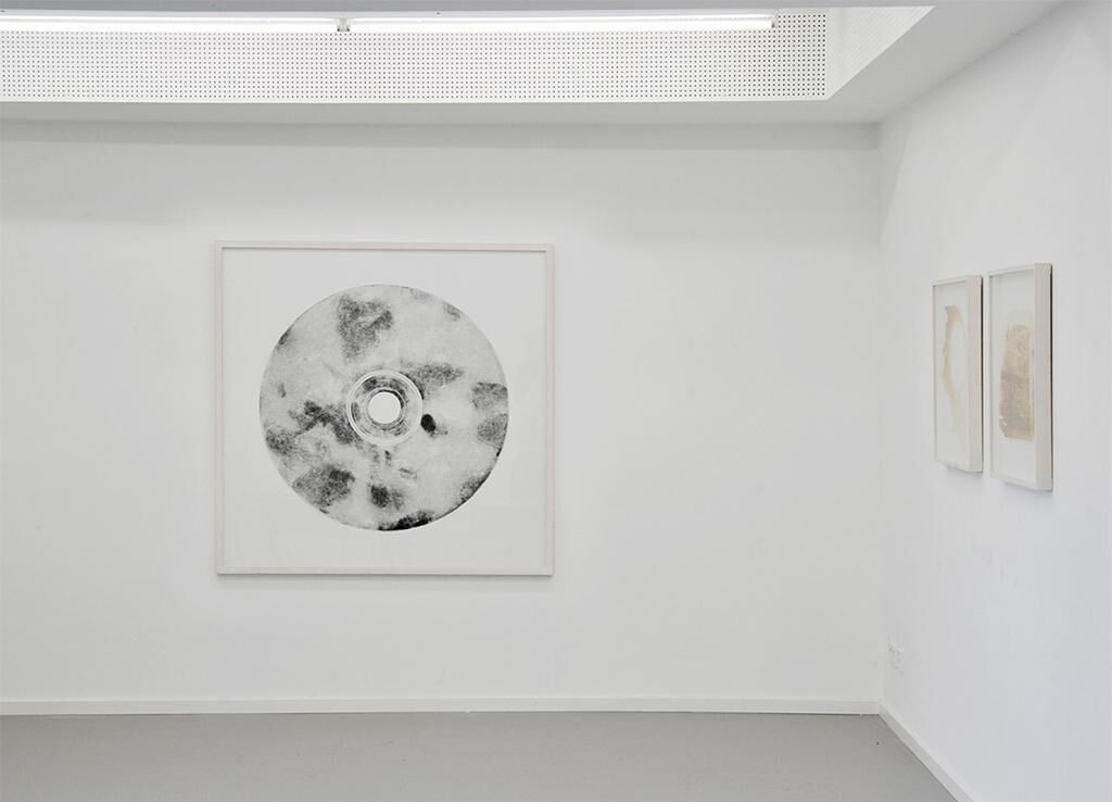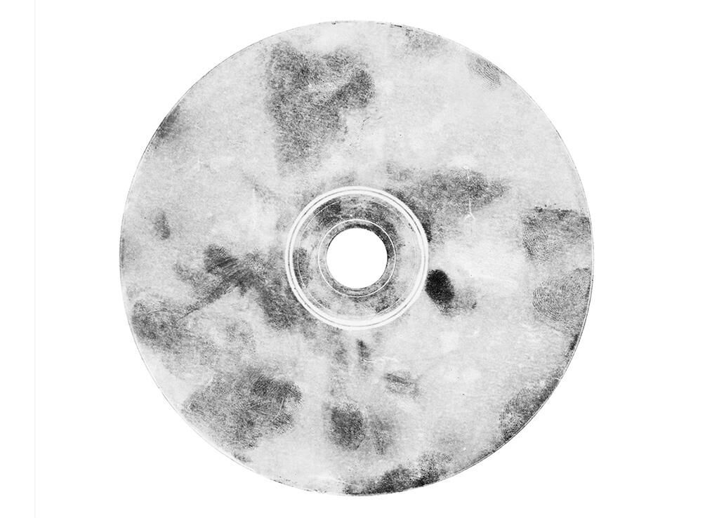 Fingerprints of various anonymous viewers on the pornographic rental-DVD ‚Private Emotion’. The disc was treated with ferrite powder, which is regularly used in police securing of evidence. As numerous fingerprints appear on the surface, the eponymous ‚Private Emotion’ turns out to have been experienced over and over by multiple unknown voyeurs.