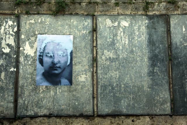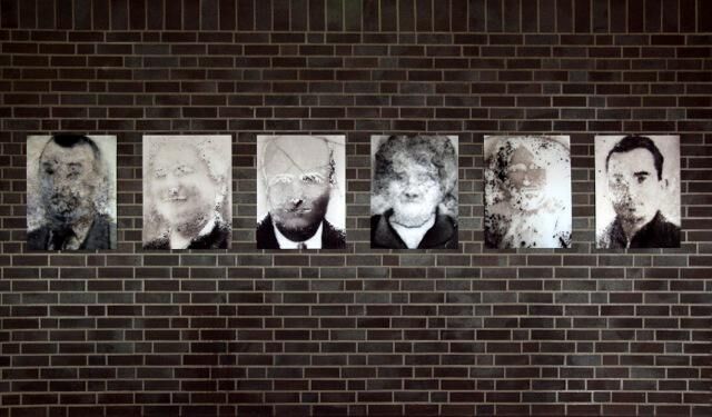 Campaign posters for the dead (70×100 cm), 2014 Installed in 6 separate locations in Montepulciano (IT) Memorial photo portraits on the surface of grave stones were exposed to decades of changing weather conditions. Thereby transforming their pictorial qualities.