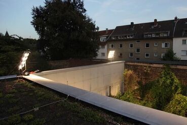 Light installation, 2014 (48 KW, mirrored disks, 10x10x5m, 10-24h)