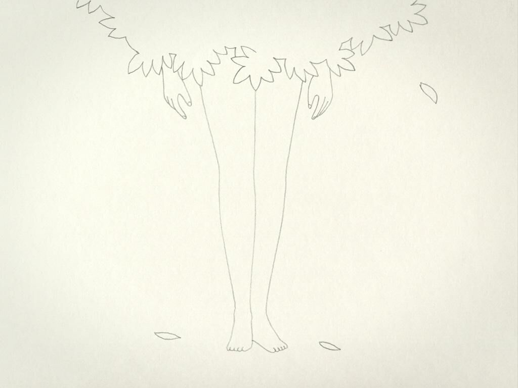 A figure that is both tree and woman, slowly being explored as it continuously breaks and grows and takes on different forms. Like leaves that leave the nimble limbs on tiptoe, the timid barks of timber cut to shape.