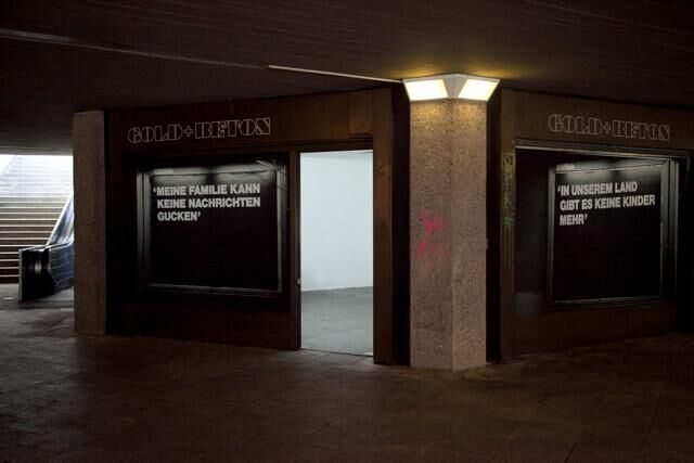 Large panel Posters,, 2×18/1, 356x252 cm, 2015 Quotes of Syrian refugee children as a poster series, installed for two weeks in Dortmund Dorstfeld, in the immediate vicinity of the stronghold of the neo-Nazi scene.