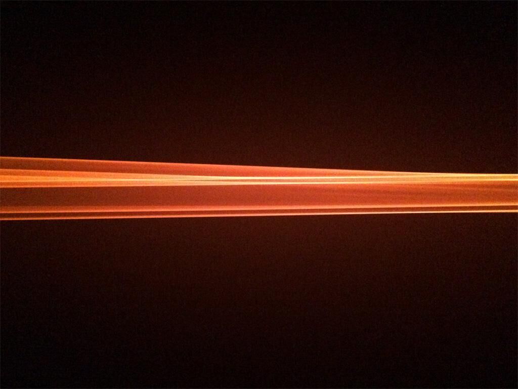 Ein Heizdraht wird über Glasstifte gehangen und über kleine Gewichte über eine Länge von etwa drei Metern so gespannt, dass er auch beim Glühen und der damit verbundenen Ausdehnung unter ständiger Spannung bleibt. Dabei befindet sich dieser zwischen einer Glasscheibe und einer weißen Rückwand. Betrieben wird der Heizdraht über Strom variabler Frequenz und Amplitude. Dazu werden verschiedene Wellenformen miteinander kombiniert und bilden eine Interferenz. Diese Synthese und Komposition hoch verstärkter mehrfrequenter Töne versetzt den Draht in eine rotierende Schwingung bei gleichzeitiger Varianz der Leuchtkraft. ""Stream"" wird in absoluter Dunkelheit präsentiert. Der pulsierende oszillierende Draht zeichnet eine abstrakte ephemere Choreographie räumlicher Interferenzbilder. Die Abwesenheit räumlicher und zeitlicher Bezugsgrößen sowie die Fremdheit der Form eröffnen dem Rezipienten das Erleben von und Eintauchen in ganz eigene Assoziationen.