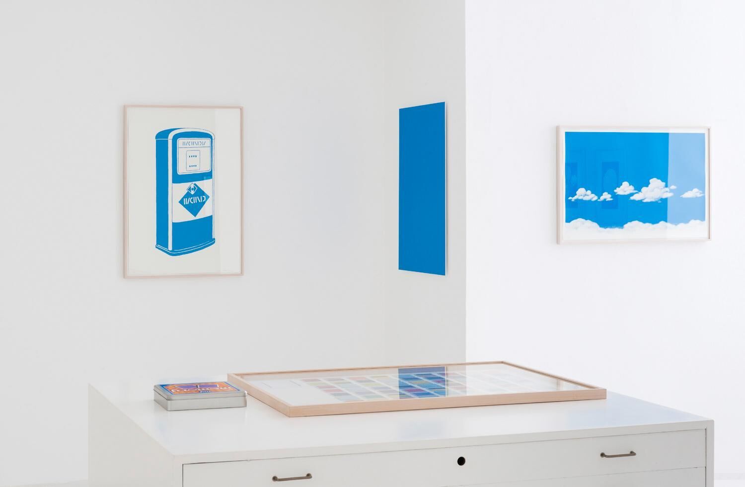 Rozbeh Asmani artistically explores the aesthetics of capitalism. His work series Colourmarks is the product of an on-going research into the field of colour trademarks registered at the German Patent and Trademark Office. He visualizes their impact on our collective memory when used exclusively by corporations as part of their corporate identities. By way of silk screening and c-printing he produces abstract colour plates. Confronted with the question what these colours stand for, the beholder’s attention is raised to the complex link between colour, power, and memory. His new series of silk screens deals with colours protected by trademark law in their respective fields of usage: the colour design of petrol stations or pumps of a large petroleum corporation as well as the vehicle and overall of a haulage firm or the blue round with writing of a crème box. One view is often enough in order to be reminded not only of the exact trademark, but also of the time and circumstances of our encounter with these products and services. In the U.S. hundreds of chrysanthema have been patented as decorative plants, since their ingredients are of great interest to the industry. Based on their depictions in patent files, Rozbeh Asmani has printed photogravures. Zwieback and Underberg are three-dimensional shapes protected by trademark law in Germany. In his bronze casts, Rozbeh Asmani appropriates them to himself in an ironic way.