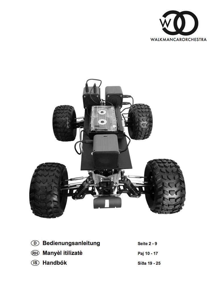 Einsatzorte des WalkmanCarOrchestra sind Bühnen und Straßen. Informationen, Funktionsübersicht und Hinweise zum Gebrauch sind der Bedienungsanleitung zu entnehmen.