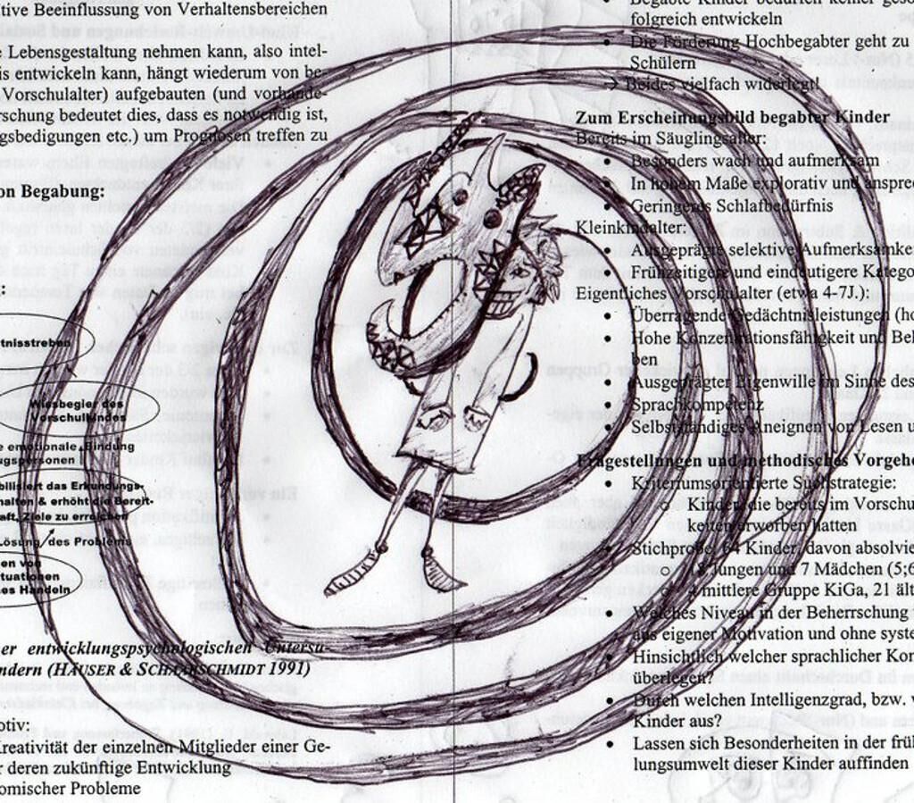 A lot of people are drawing and scribbeling things in notebooks or on slips of paper while they are in phone conversations or other forms of communication like seminars and work. We would like to collect those kind of drawings and scribbles to use them as inspiration, give them movement and characteristics and also let them react to each other. Our aim is to explore the subconscious relicts of communication and find a way to show them in a mixture of pictures and music.
