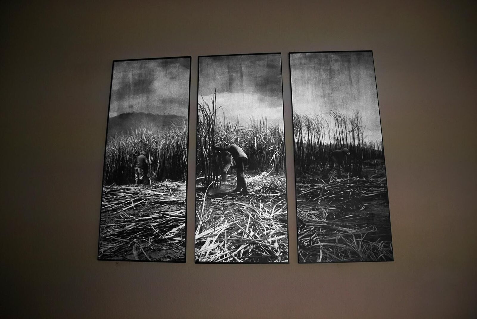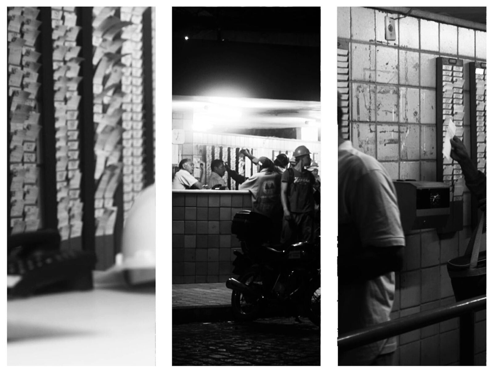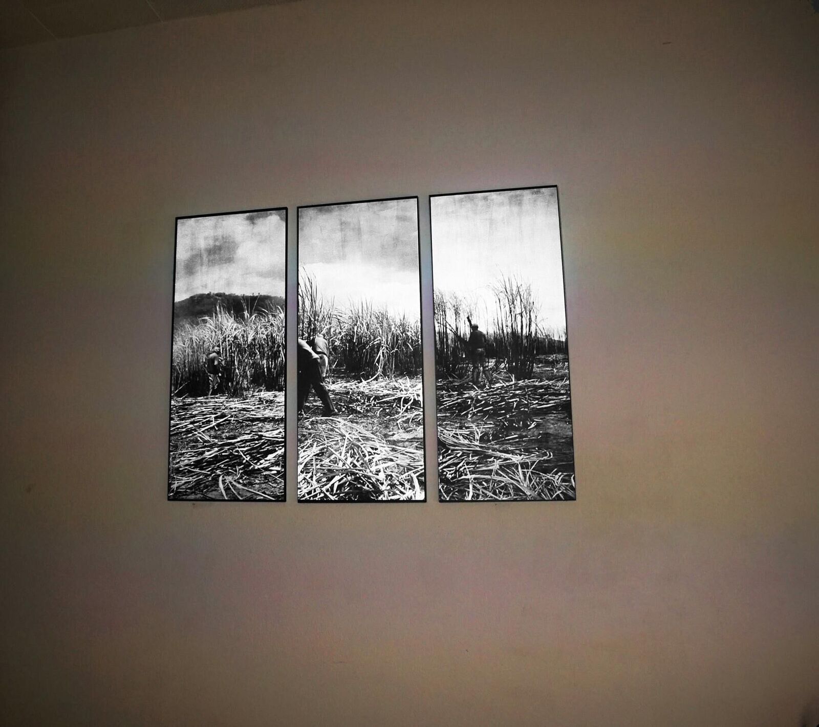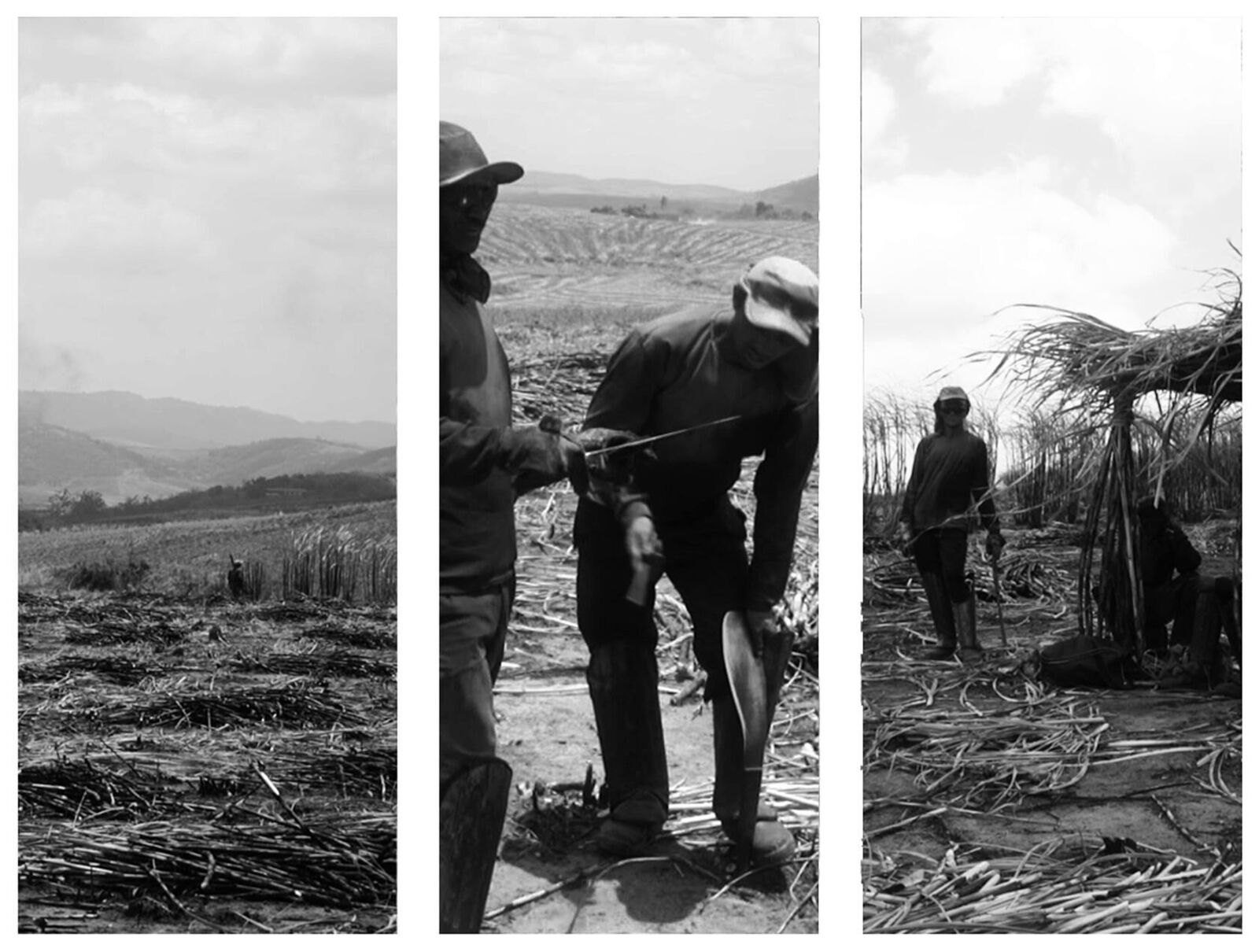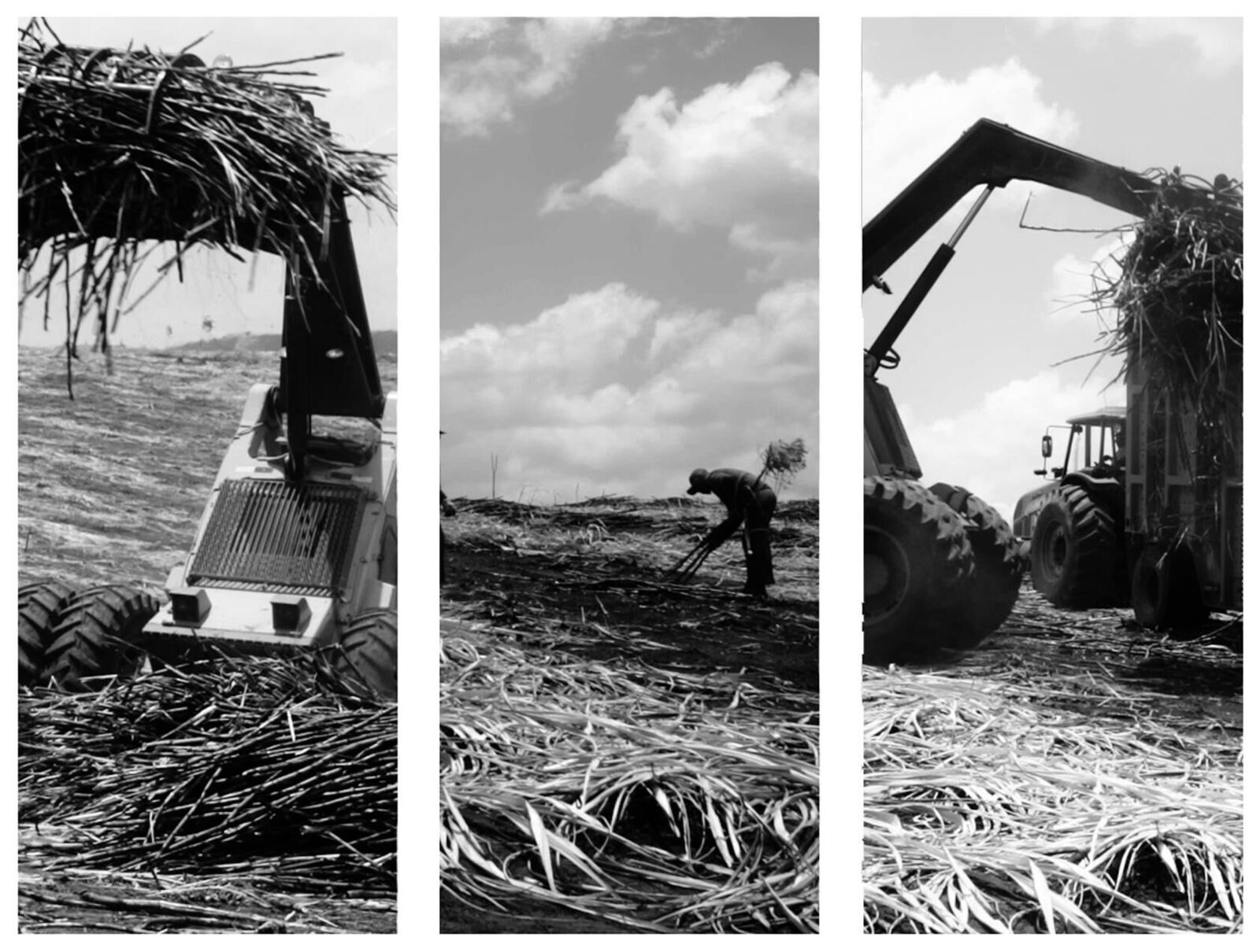Three-channel video installation with sound / projection on wood, black iridescent colour / 10 min loop / Man, machine and landscape as icons in a timeless circle. Eternal repetition. There is no evasion. The man as an unfree labourer for the machine... machines have no dreams. The mill grinds on and on.
