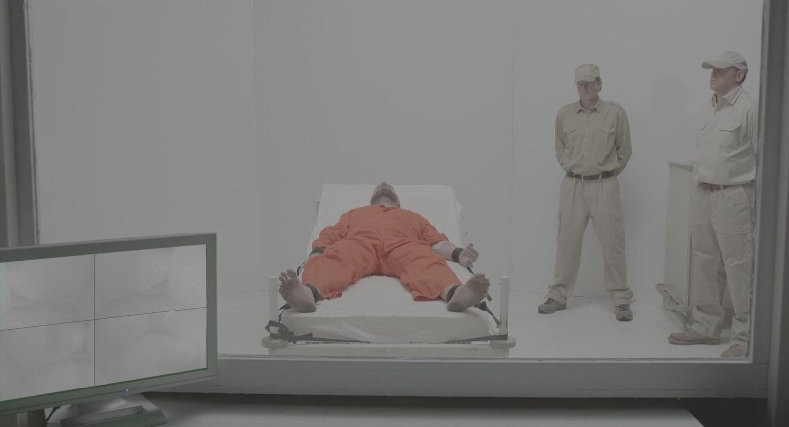Ein Gefangener befindet sich in einer abstrakten, clean-weißen Gefängniswelt und wartet auf seine Hinrichtung. Die beiden Wärter schleifen ihn durch Gänge bis zu einer Liege, wo ihm eine Infusion verabreicht wird. Begleitet von Sibelius ""Valse triste"" läuft ein immer wieder kehrender Kreislauf der weißen Folter ab.