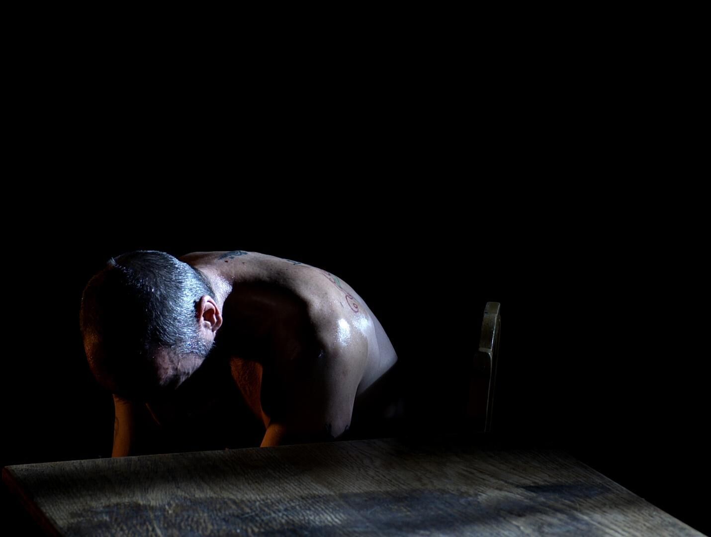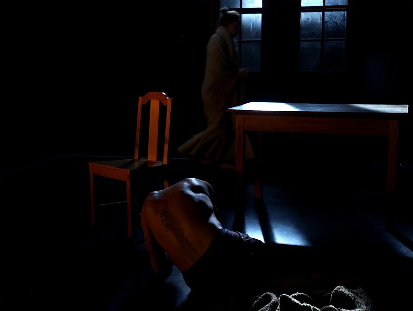 Fünftes Segment von insgesamt sieben der Regie-Kameraübung Nr. 2, basierend auf dem Theaterstück von Henning Mankell ‹Zeit im Dunkeln›. Versuch, den Kontext des Stückes in die Zeit des 16. Jahrhunderts zu legen, bei puristischer Einrichtung der Bühne (keine Wände, nur Markierungen auf dem Boden) und entgegen der Intention des Stücks in der Zeit des 21. Jahrhunderts zu spielen. Eine (inhaltliche) Überforderung.