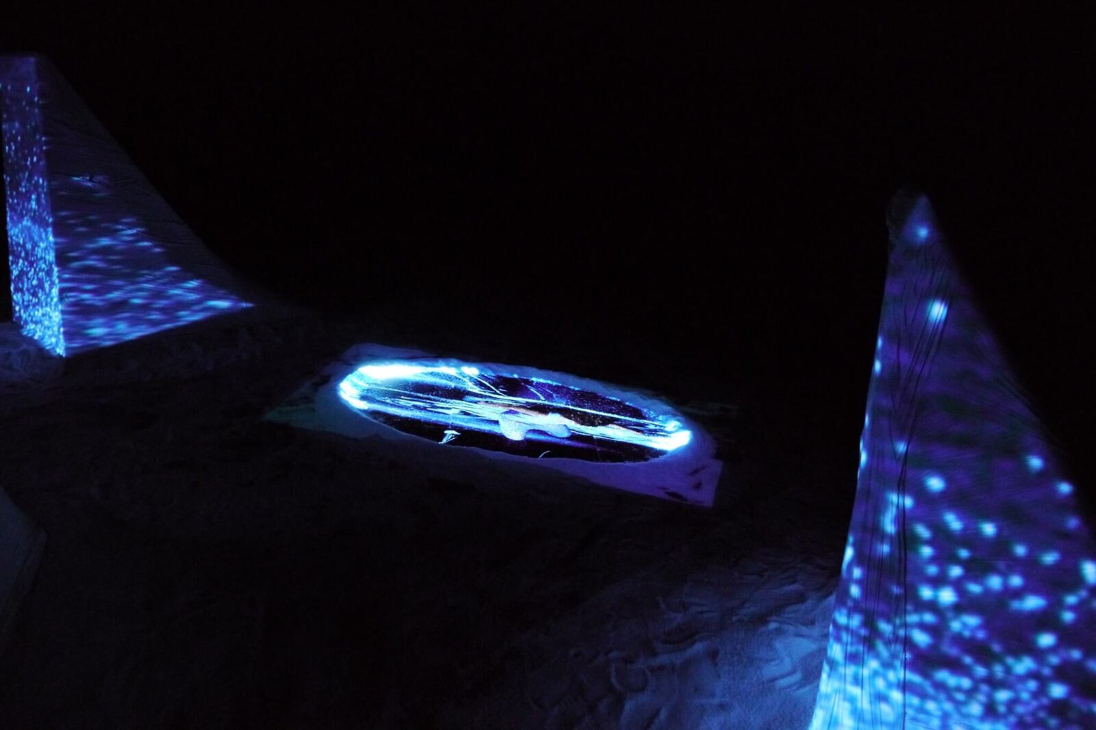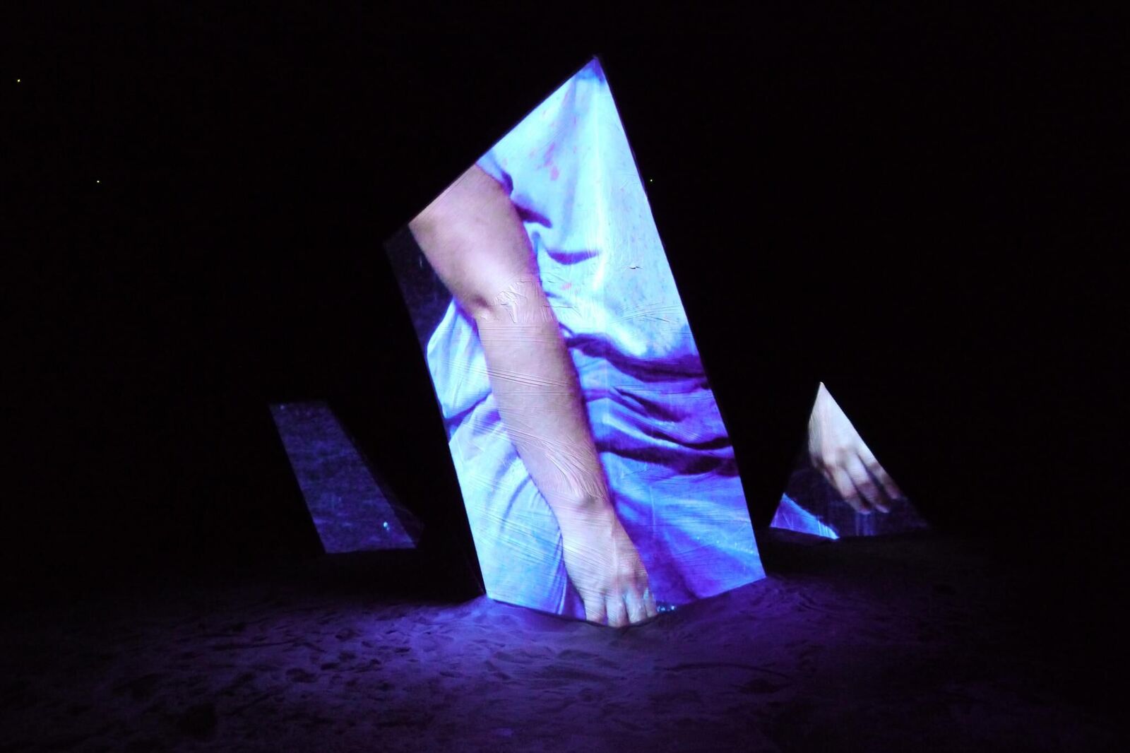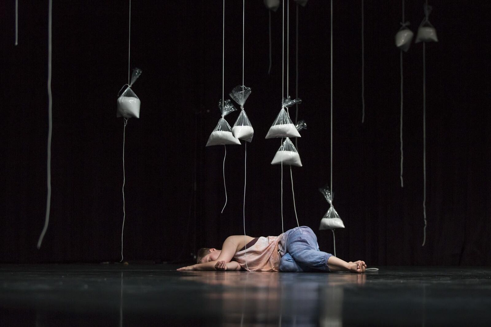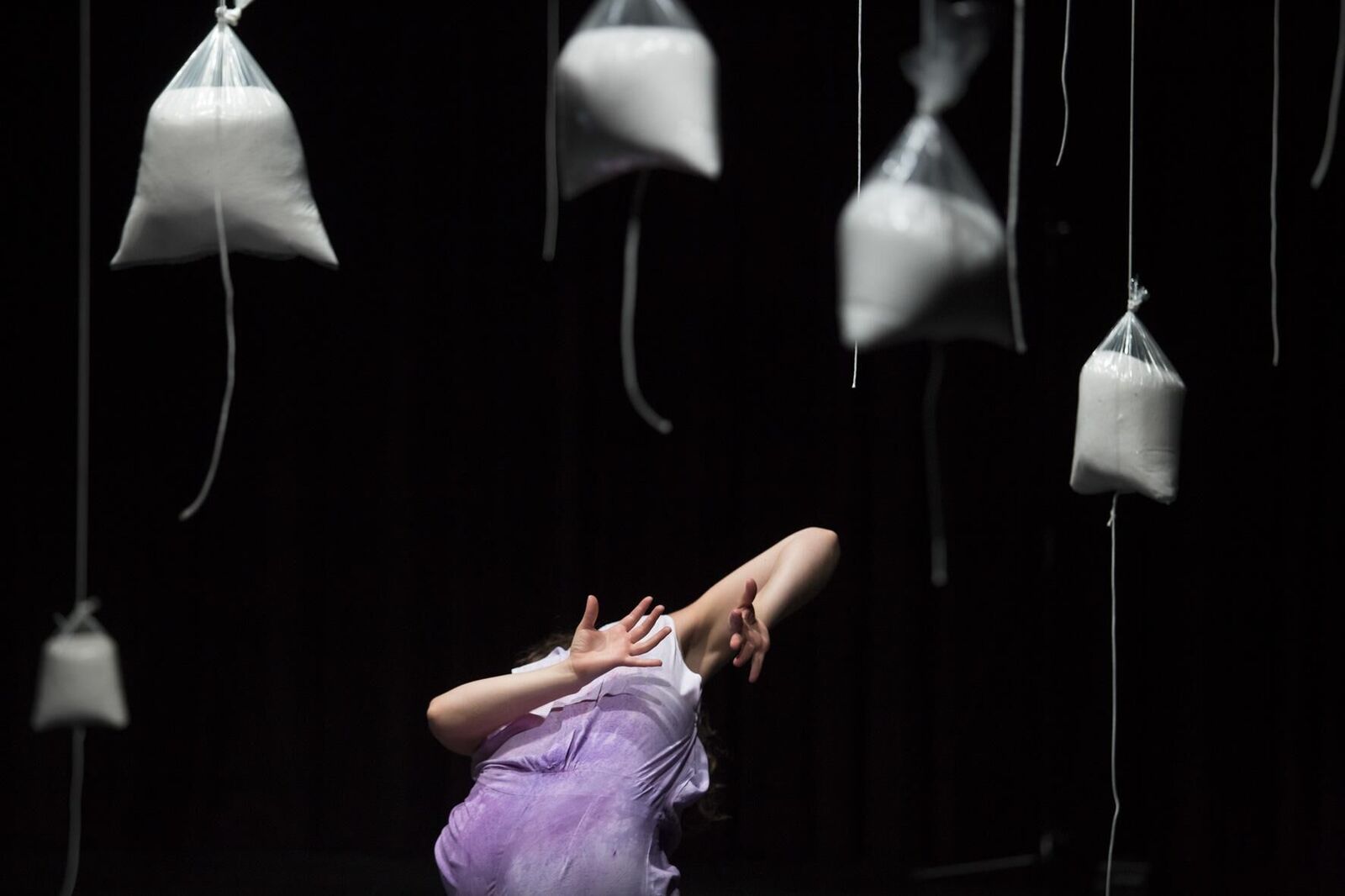 ABOUT.SALT ist eine multimediale Rauminstallation, die auf dem zweiteiligen Live-Stück SALT. basiert, das in Zusammenarbeit von Constanza Ruiz Campusano, Silke Schuster und Sanaz Starcic im Rahmen des Projekts frames:[everyday] von Darko Dragicevic und Martin Sonderkamp entstanden ist. Das Stück wurde von der Künstlerin Sanaz Starcic in ABOUT.SALT neu adaptiert und interpretiert. SALT. Drei Tänzerinnen bewegen sich in einem unendlichen Raum in unendlicher Zeit. Der Raum ist schwarz. In bläulichem Licht schweben 200 Kilogramm Salz in verschieden großen transparenten Plastikbeuteln von der Decke. Schnüre hängen an diesen herunter. Die Schnüre werden durch die Tänzerinnen gelöst, das Salz freigesetzt. Das Salz wird zum Akteur. Der Raum beginnt sich zu transformieren und mit ihm die Akteurinnen selbst. In ABOUT.SALT verbindet Sanaz Starcic in einer Rauminstallation, die als Loop aufgebaut ist, die beiden Teile des Live-Stücks SALT. Der Raum der Unendlichkeit wird für den Betrachter zugänglich gemacht. Er findet sich körperlich in der Landschaft des zweiten Teils von SALT., der Salzinsel, wieder. Dadurch erlebt er traumähnliche Sequenzen der Performance.