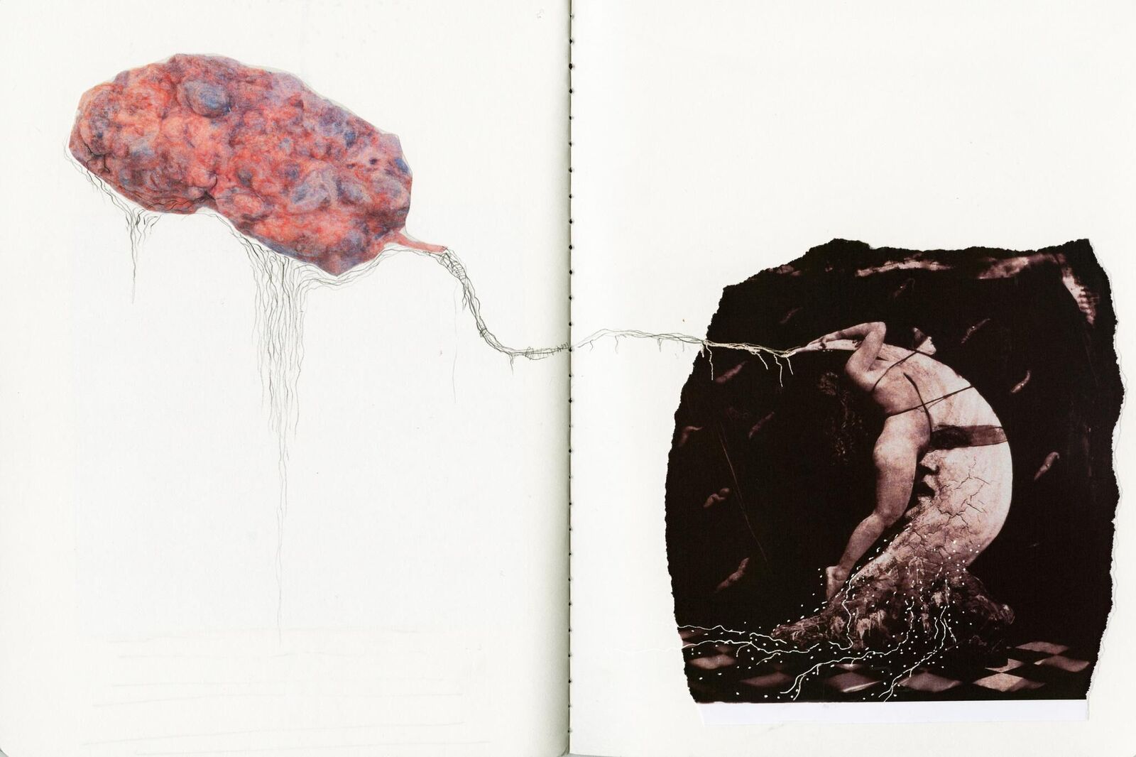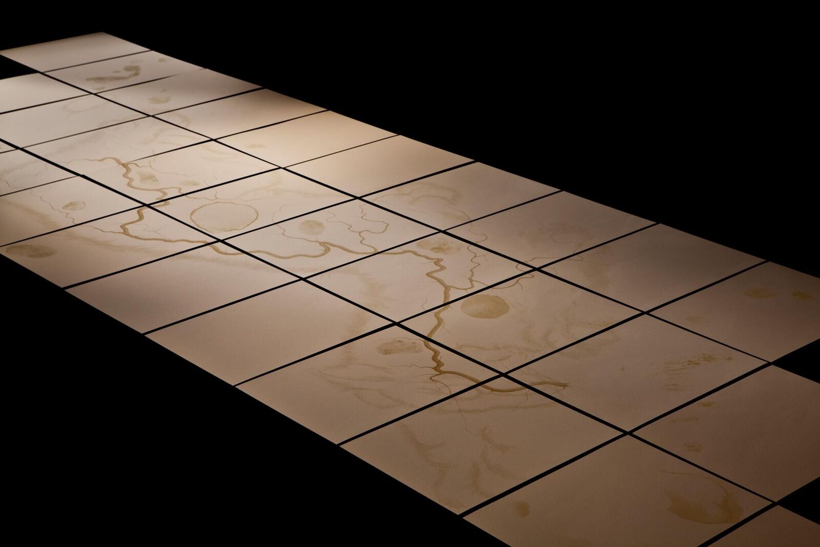 Using Baekdu mountain range and Map of the Korean Peninsula Shaped like a Ferocious Tiger (槿域江山猛虎氣 象圖), Su:um, Dari is a 33 to 35-plate story of score and choreography where human organs and plates of different senses are located. Baekdu mountain range stands for the main artery and takes the shape of branches, roots or a snake. This piece’s overall story was composed based on the information of underground movements (location, direction, intensity) gathered for 15 days by the seismic triggers installed 100 m underground in Jeongseon, Gangwon-do Province. It consists of a 49-minute interdisciplinary performance, sound (including manpasik jeok ute), dance (salpuri), score and choreography-drawing, set design and design for two costumes. The underground information was collected by the seismic trigger when winter turns to spring (thawing sea- son): from February 3 to 18. Lee Junki, professor in seismology at Seoul National University provided assistance for this information.