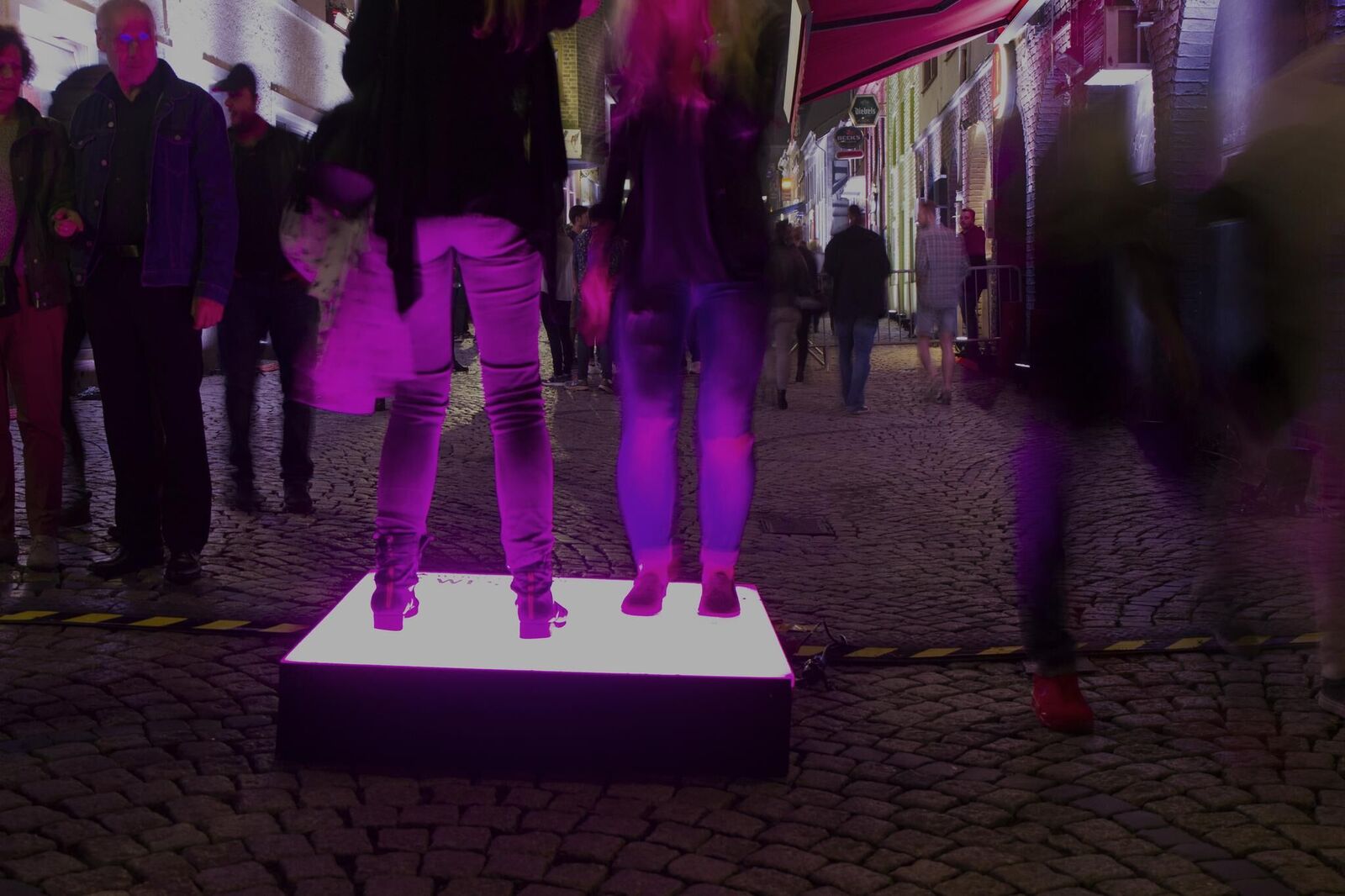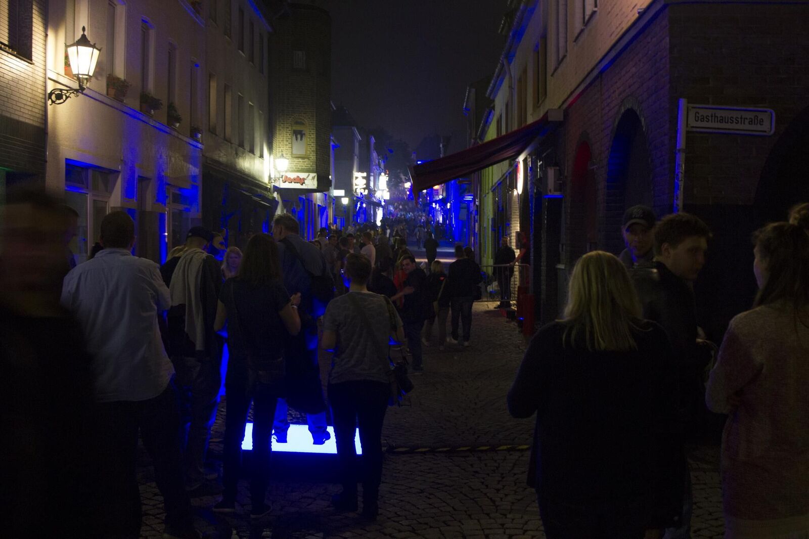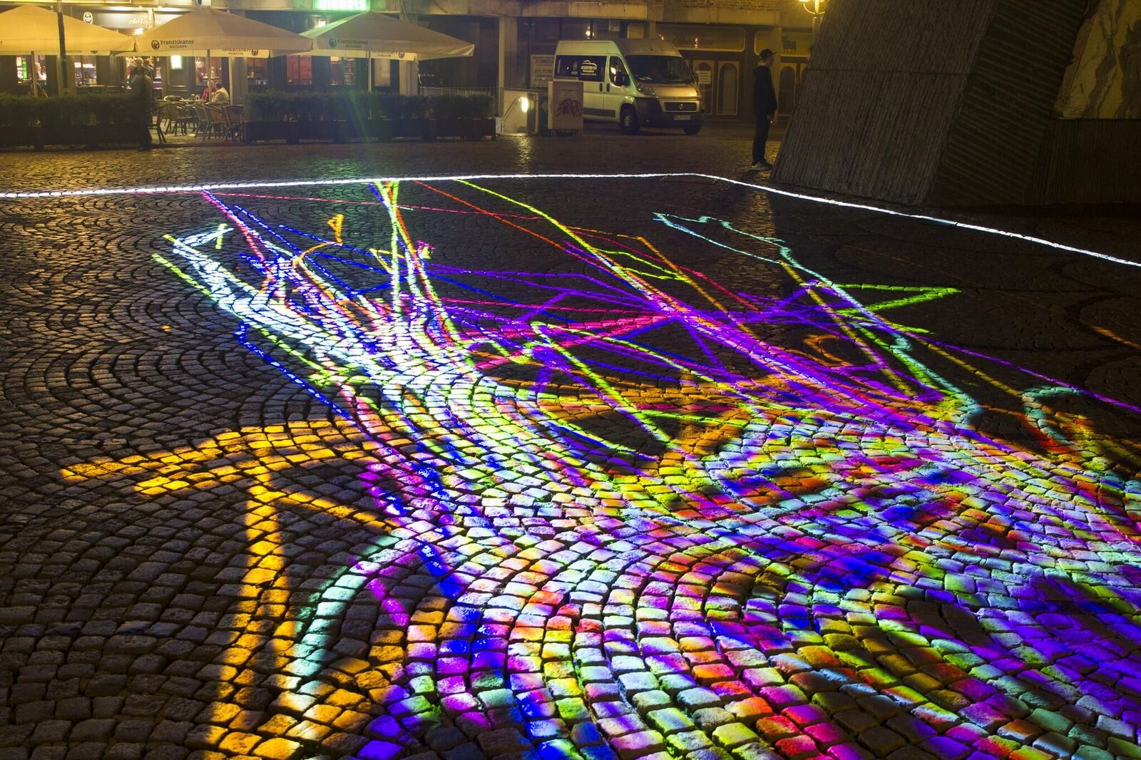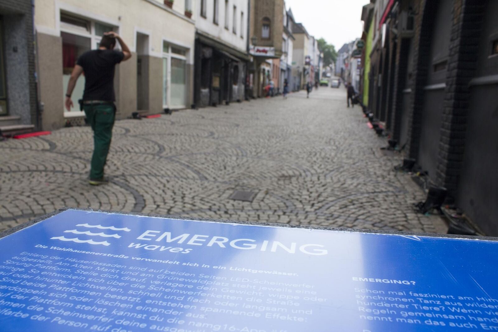 Emergenz beschreibt komplex wirkende Systeme, dessen Bestandteile einfachen Regeln folgen, ohne die übergeordnete Aufgabe des Systems zu kennen. Gleichzeitig sind die Eigenschaften der einzelnen Bestandteile, beim Betrachten des Systems im Ganzen, schwer nachzuvollziehen. Beispiele dafür sind die Flugformationen von Vögeln sowie die sozialen Gefüge von Bienen- und Ameisenvölkern. Im Rahmen der Kulturnacht - „nachtaktiv“ am Samstag, den 4. Juni 2016, in Mönchengladbach wurden in der Altstadt drei Licht- / Videoinstallationen aufgebaut, die sich mit dem Thema Emergenz, mit jeweils eigenem Ansatz, befassen: 1. EMERGING waves – Zwei Sprungplattformen, mit denen die Besucher Wellen erzeugen konnten, die durch 200 LED-Scheinwerfer entlang der Häuserfassade sichtbar wurden. 2. EMERGING coordinates – Jeder Besucher konnte mit einer App seinen Weg durch die Nacht aufzeichnen. Dieser wurde mit den Routen aller anderen Besucher auf das Kopfsteinpflaster des Marktplatzes projiziert. 3. EMERGING magnets – Aus einem Raster von 10 x 10 kopfbewegten Scheinwerfern entstand ein Magnetfeld. Sobald die Besucher sich hindurch bewegten, reagierten die Scheinwerfer wie eine Kompassnadel. Ziel des Projektes war es, den Besuchern einen Einstieg in das Thema zu ermöglichen, bei dem sie Emergenz physisch und visuell erleben konnten. Eine selbstentwickelte App diente im Vorfeld als Werbemedium und wurde am Abend als Interface für die Installationen genutzt.