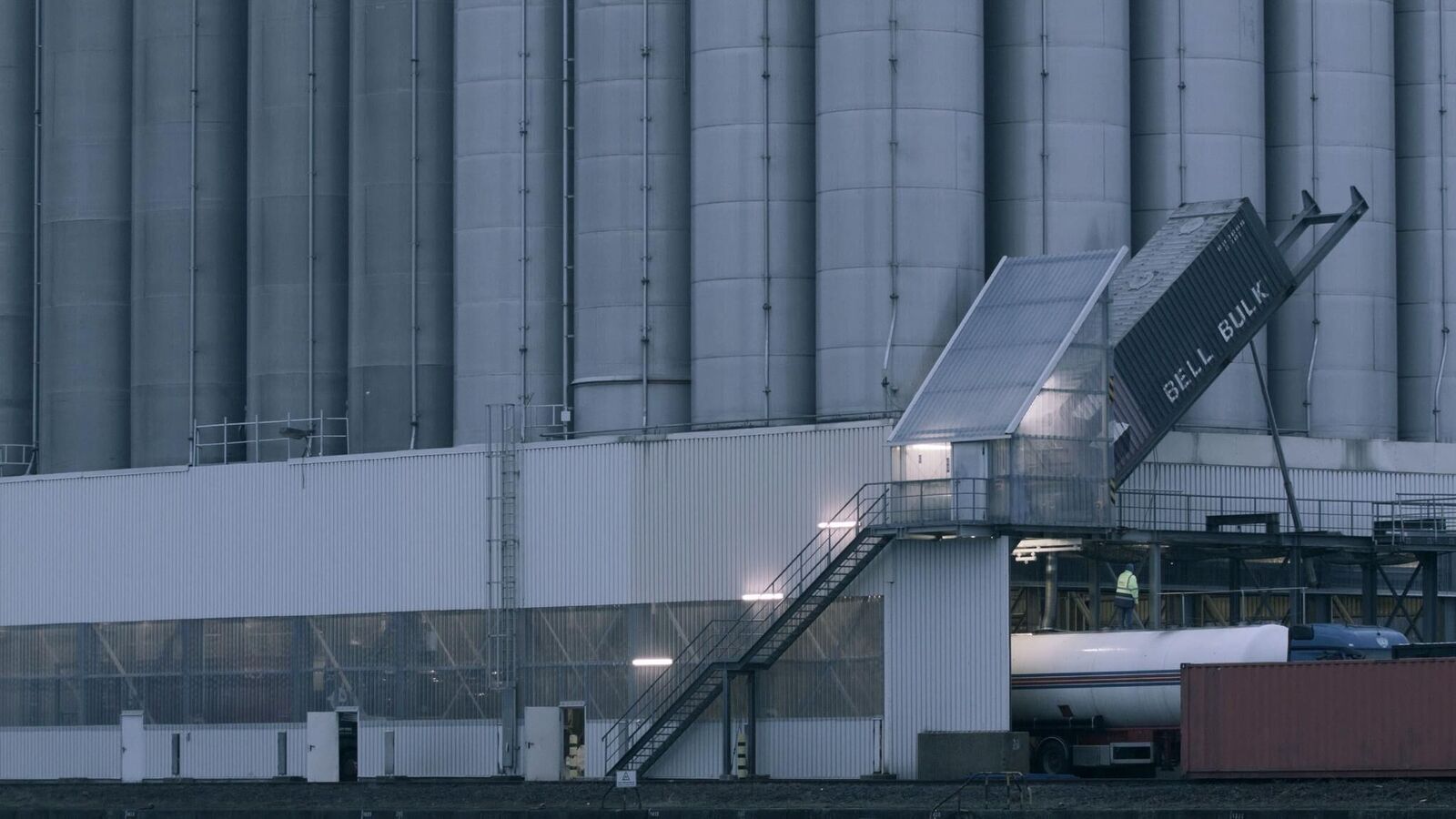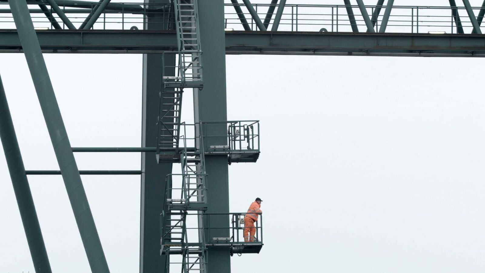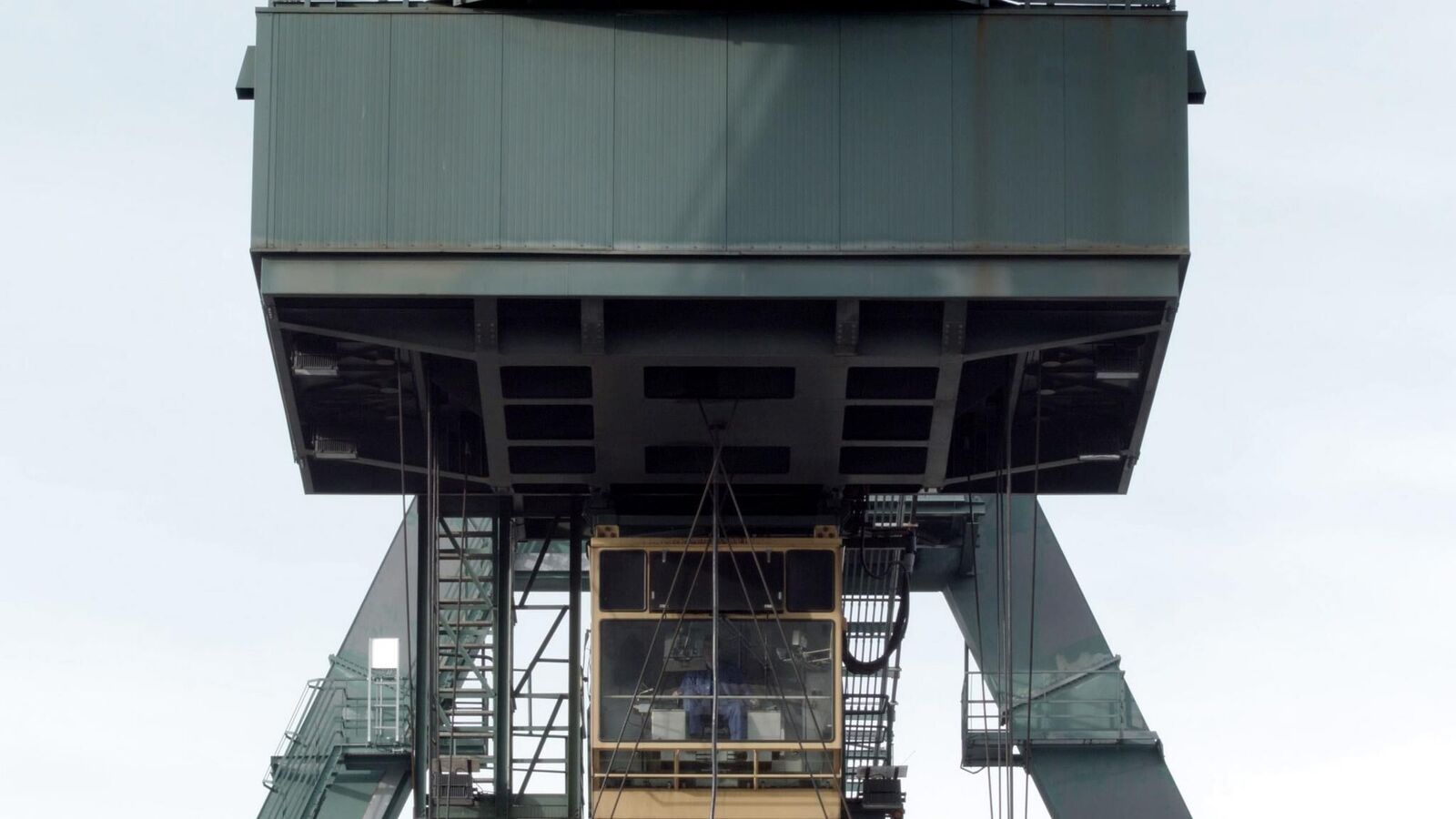 Equipment and loading mechanisms of a port area wander in constant motion rhythmically and purposefully along the quay. ISO containers in different colours are lifted and re-placed elsewhere, in between: moments of motionlessness and stagnation. Defeated by the machines in terms of size, some dock workers wearing bright orange safety jackets can be spotted in the middle of the loading and container bridges. During the approaching night, the processes around the port area appear in a different light, only shadows and silhouettes of the continuous machine processes remain. Monoscape shows fragments, shapes and movements of an industrial cycle. Through the calm and documentary images, the machinary processes gain a repetitive and ubiquitous dimension. Removed from their purpose-determined context, they seem like anonymous idle objects in an engineered landscape.