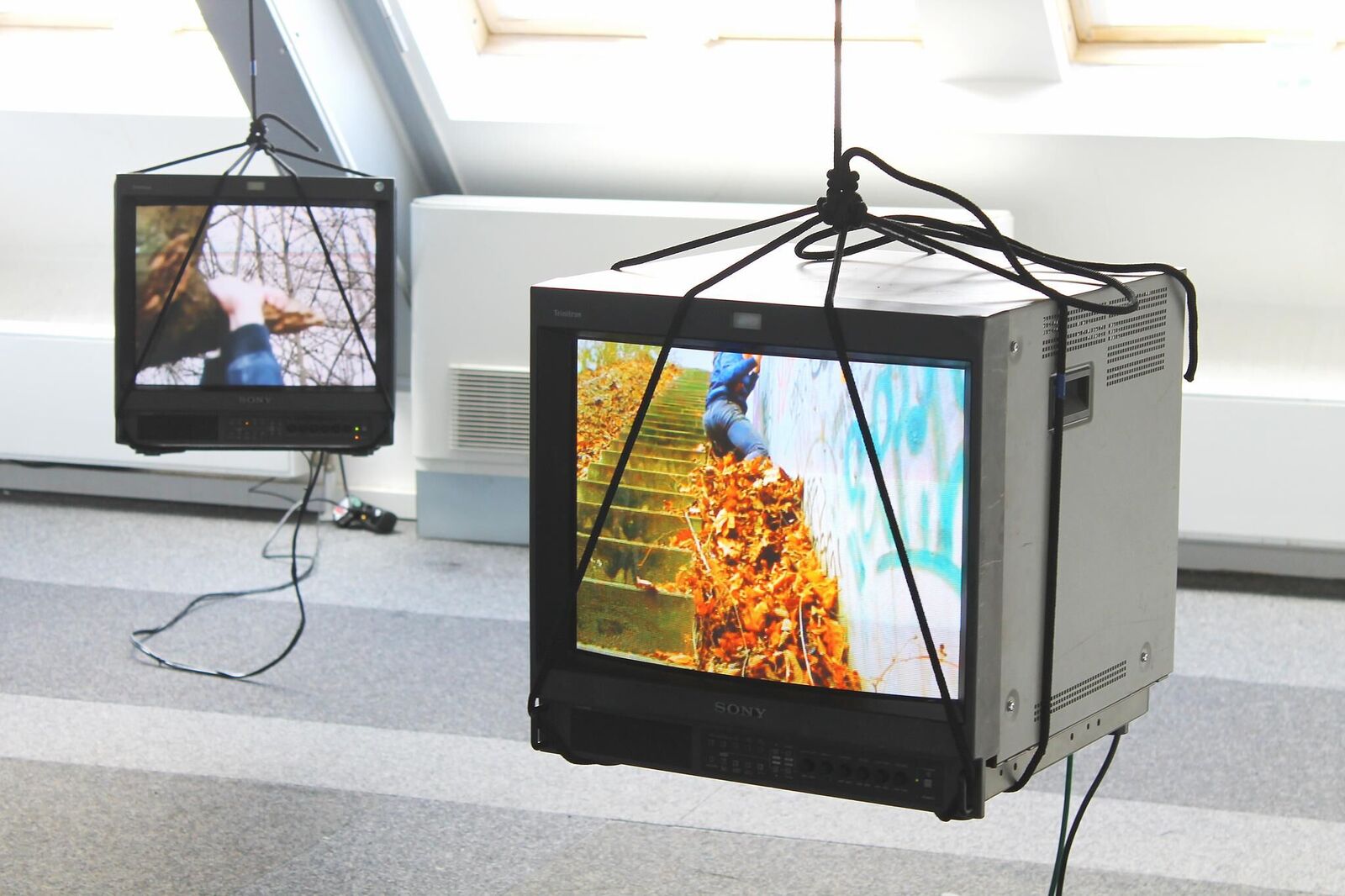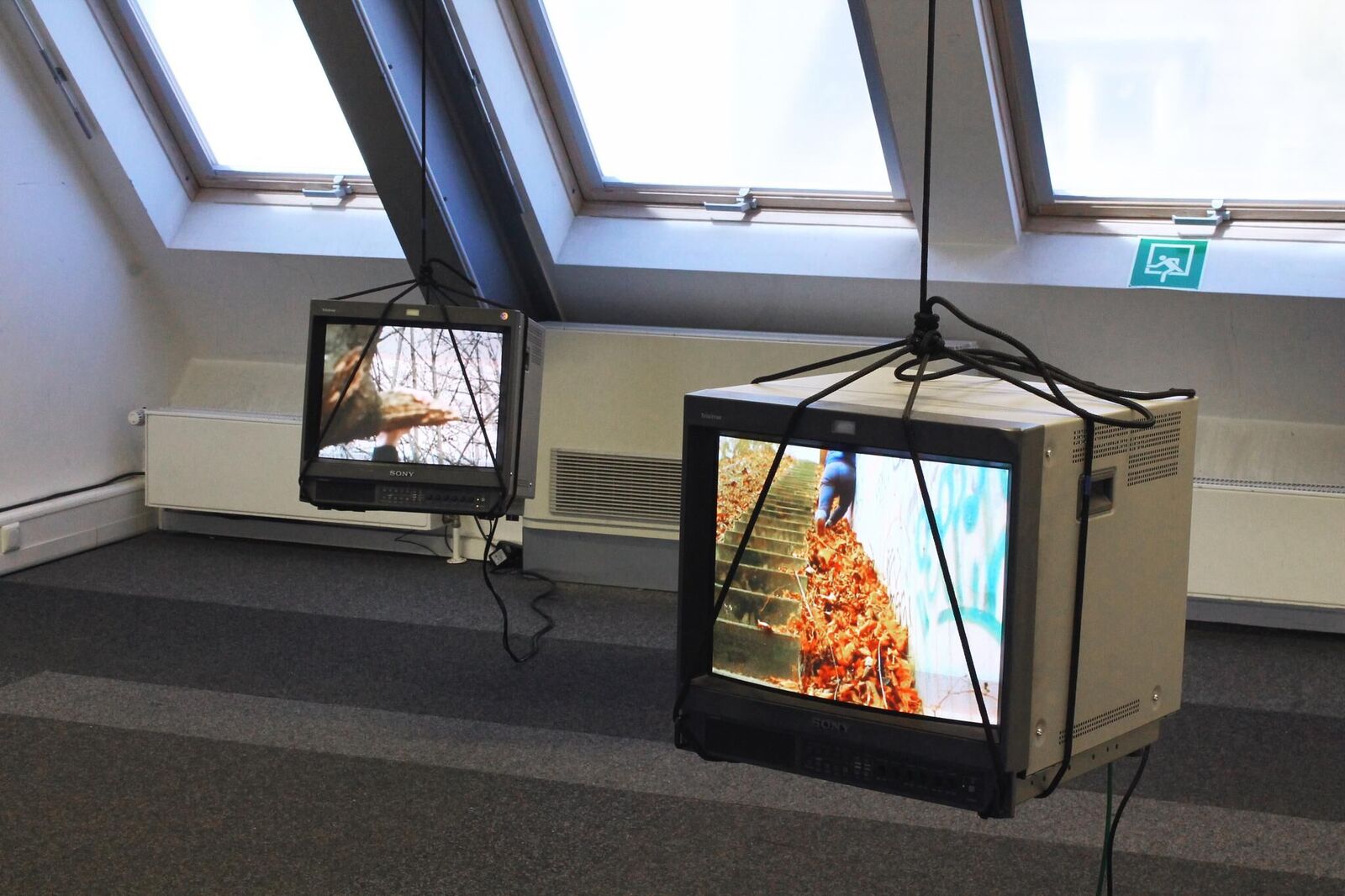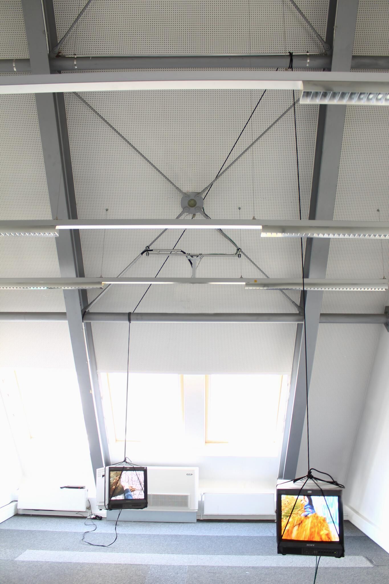 ""The Bridge"" presents an utopian and poetical balance between two sides of the world, where an ambivalence of different conducts and human behaviors in each cultural system is proposed. Such difference should be understood as a transit through a bridge, where different kinds of sense are produced: connections or non-connections, uncertainty, displacement, identity, fragility and balance. The current piece aims to questionate the belonging to a place as well as the tension between parts when it happens. The installation is composed of two video monitors, which hang from the celling while an edited video performance is presented on the screens. This work should be understood like a site specific work as it is planned to create a dialogue with the nature and the language of the space. In that case a structural configuration presents an opportunity to get an interaction between ""Raum"", spectator, object and image.