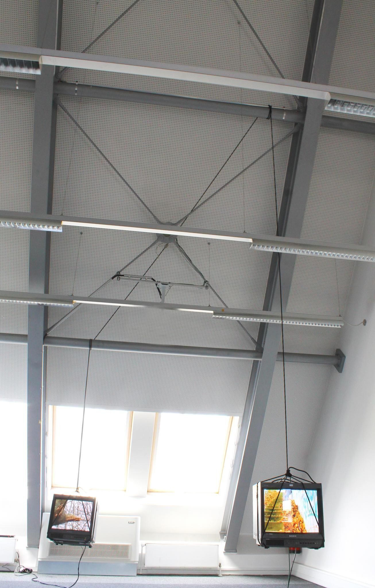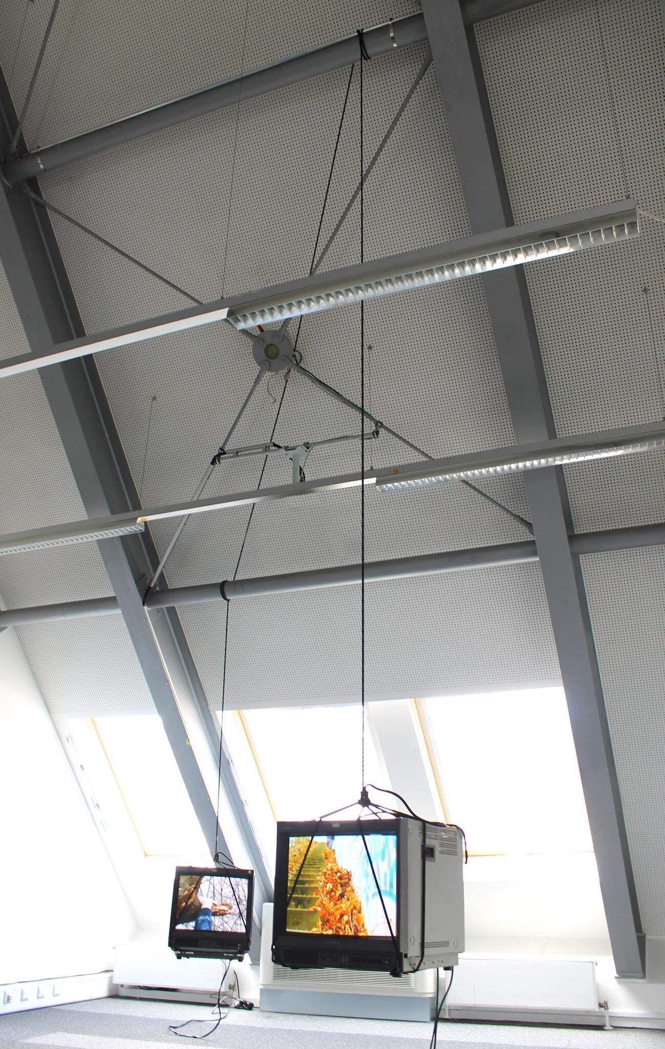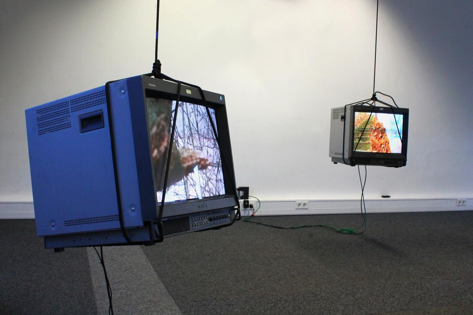 ""The Bridge"" presents an utopian and poetical balance between two sides of the world, where an ambivalence of different conducts and human behaviors in each cultural system is proposed. Such difference should be understood as a transit through a bridge, where different kinds of sense are produced: connections or non-connections, uncertainty, displacement, identity, fragility and balance. The current piece aims to questionate the belonging to a place as well as the tension between parts when it happens. The installation is composed of two video monitors, which hang from the celling while an edited video performance is presented on the screens. This work should be understood like a site specific work as it is planned to create a dialogue with the nature and the language of the space. In that case a structural configuration presents an opportunity to get an interaction between ""Raum"", spectator, object and image.