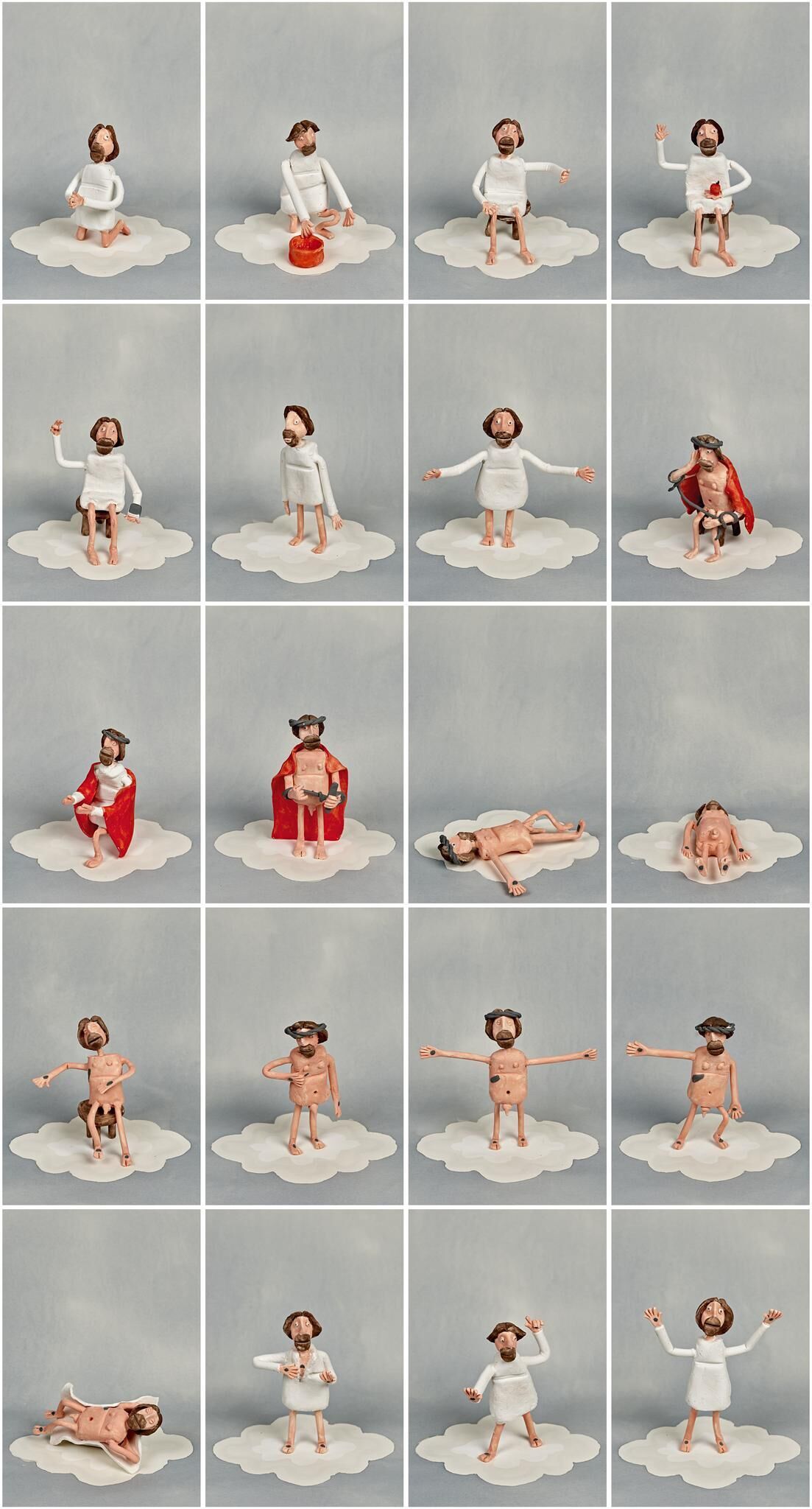 Das Christusbild nach Peter Lober umfasst 20 Motive. 2015 stellte Johannes Vogginer für mich das Christusbild dar. 2017 stelle ich das Christusbild mit selbst gemachten Figuren dar. Hierzu ein Auszug aus dem Manifest der Oeiau: ""Das Wörterbuch einer lebendigen Sprache ist keine Versteinerung, da es ununterbrochene Änderungen erlebt: Worte versinken, sterben, Worte entstehen, kommen neu zur Welt, Worte werden aus der Fremde über die Grenzen nach Hause gebracht. Ebenso diese Arbeiten, denen ich den Namen Oeiau gebe: Objektivation einer imaginierten alternativen Utopie. Oeiau bedeutet auch Objektivation einer imaginierten adorablen Utopie. Sie bedeutet auch Objektivation eines imaginierten affinierten Universums. Oeiau bedeutet alles. Sie bedeutet aber nicht: Oh, es ist aber ulkig.""