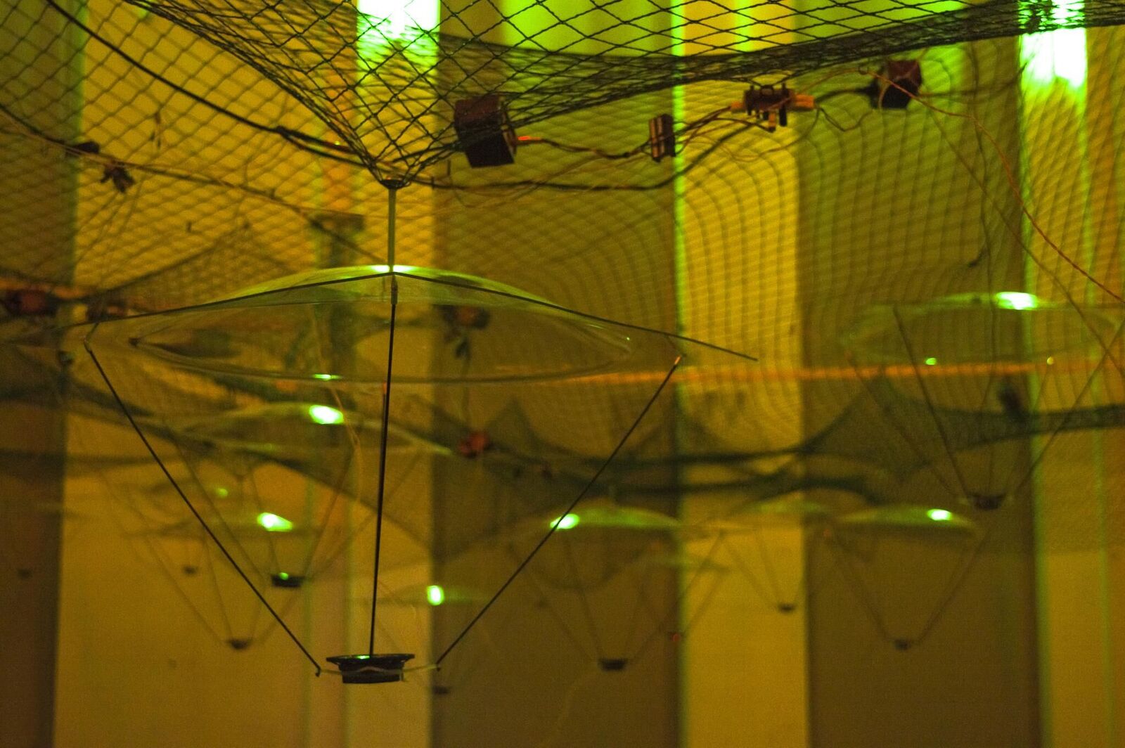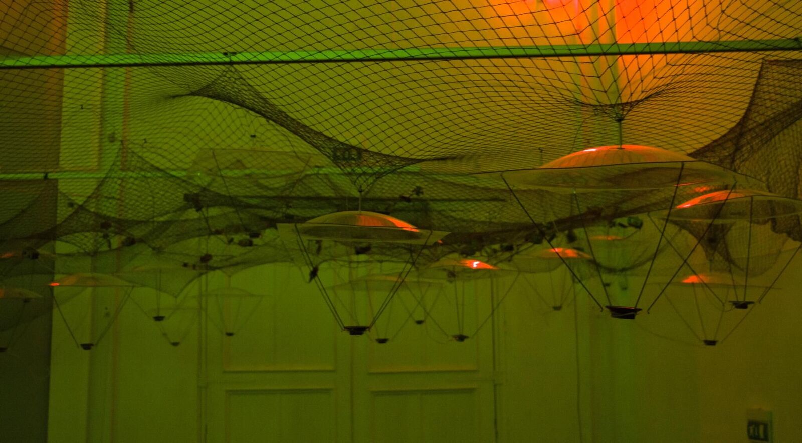 ln the work I am exploring the Amazon rainforest sounds that we, usually, cannot hear. These sounds are produced by the Amazon rainforest plants, animals, insects and birds. The work is a part of my research on communication among plants, insects and birds to find a way to save forests after birds' extinction. ln this part of research I am interested in ultra sounds. William J. Mattsan and Robert A. Haack, in their paper ""The Role of Drought in Outbreaks of Plant-eating lnsects"", suggested that insects can hear the tree produced sound emissions. The sound emissions in the trees are produced in a cavitation process, when the water from the ground is going up to the tree branches, it produces sounds in the range between 20 kHz and 2000 kHz. My goal during the residency was to record sounds around 30 trees, so I could research these sounds and try to find the sounds that might be made by the tree it self. ln my notebook I marked the tree pattern (how fare the trees are each from the other) of recorded trees. Each tree will be one parabolic speaker (makes sound hearable only in one particular place, like a shower). Speakers will be set up in the same pattern as the trees in my note book and hanged on the ceiling. By walking through the installation and stopping in particular places, you will be able to hear the sounds which one of the 30 trees would hear/produce in the Amazon rainforest.