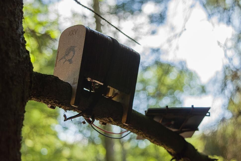 The author describes his research on communication among plants, insects and birds in a forest. Mainly concentrating on the bio-acoustics produced by them, that cannot be audible by the human ear. With this work the author wants to find out if the pecking of a woodpecker has an effect on the life of insects and if the bio-acoustics produced by a tree have an impact on insects, and how the wildlife reacts to artificial birds in a forest. To test his hypotheses the author builds artificial birds and places them in a forest. He collects data and creates a documentation of the experiments performed.