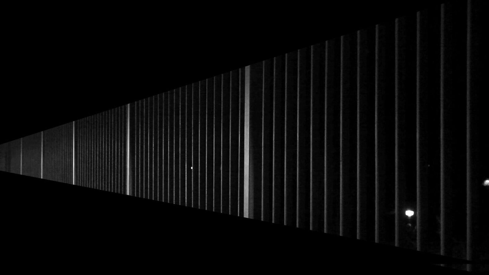 Scheinwerfer von Autos werfen Schatten auf das Geländer einer Brücke. Aus diesem einfachen Motiv entwickelt der Film einen strukturellen Rhythmus, der aus Wiederholung, Unterschied, Vermehrung und Verminderung besteht.