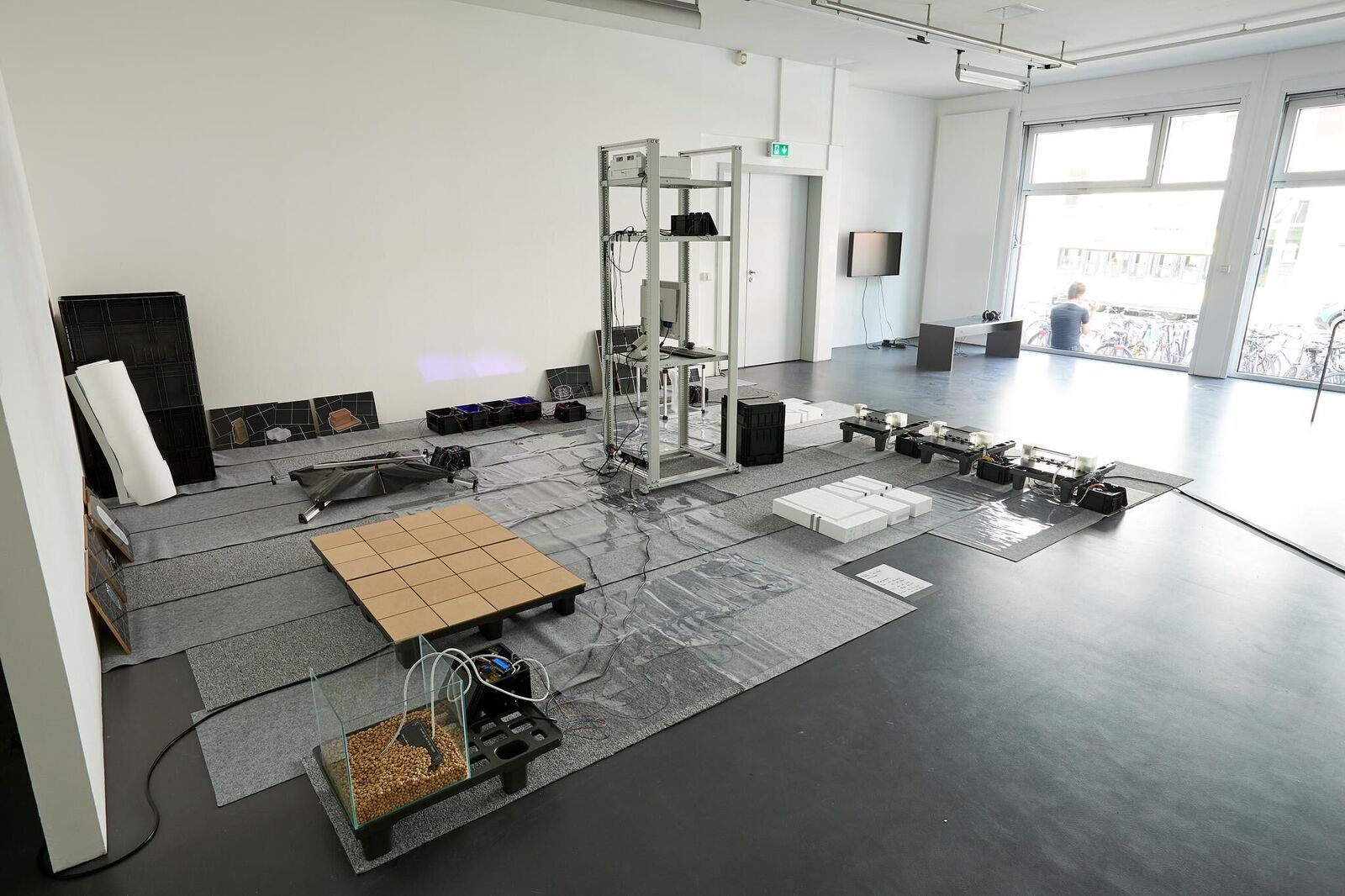 The performace/installation ‚Iterative Thingsystem / Not-iterative Thing-systematic Enivorment‘ is the result of a examination with systemic and structural society models. The basic order is a hirachic relation, that concludes to picture production. The basis is a image, in which the colours are sorted into Colour groups. The Image is constantly printed and scanned. After the scanning the pixels(values) are transfered to irritating things, which materially put out the values. The material output will then be measured and the irritated value is part of the new image. The image is printed again and is part of the iterative process. A performer starts the processes and services the things. Part of the installation is also the photographic image series Enviroment(Image) and the sculptural series Enviroment(Sculpture) which are the enviroment of the iterative thingssystem.