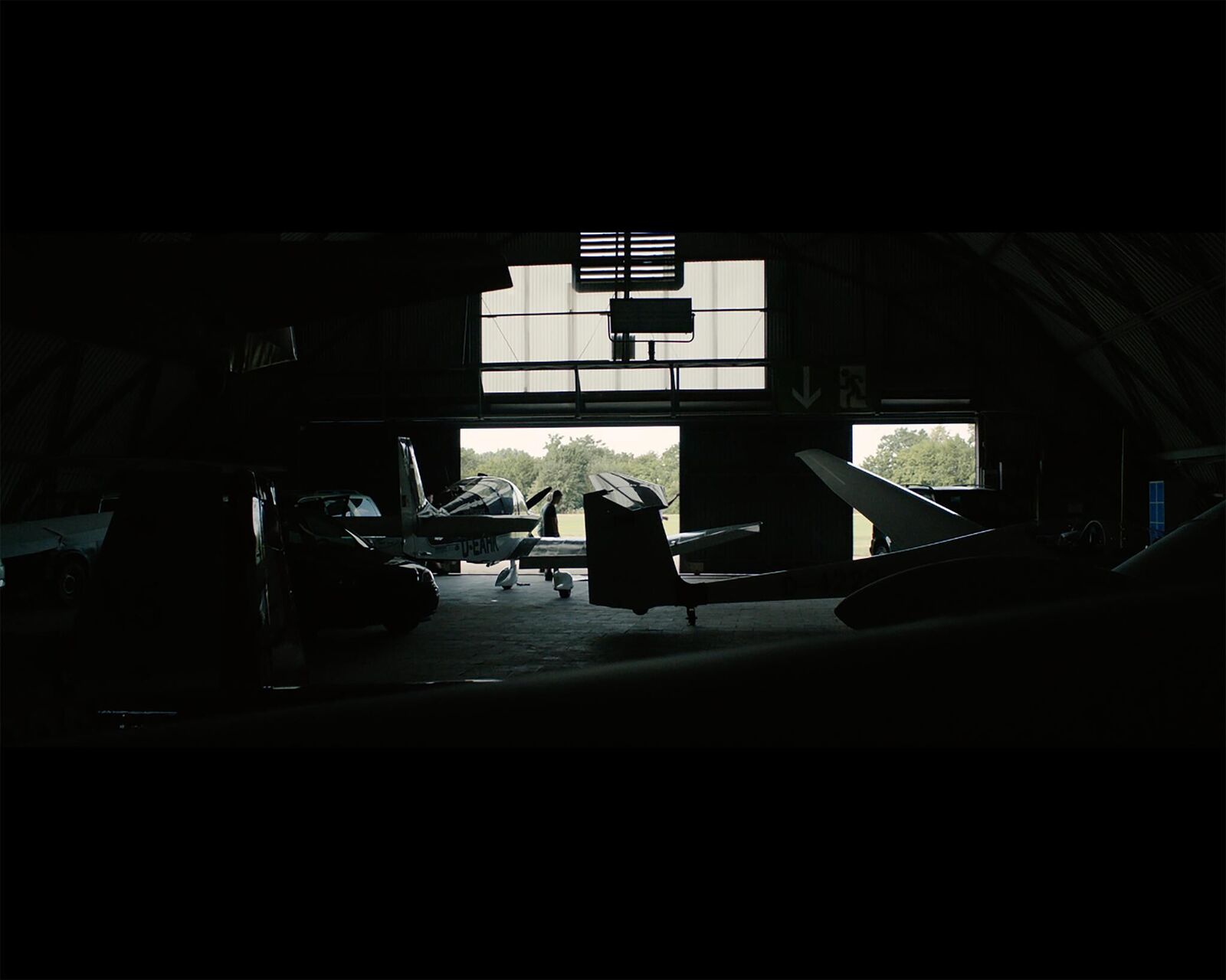 Auf dem Flugfeld des Luftsportclubs Leverkusen verfasst eine geisterhafte Frau eine Nachricht; Maschinen setzen sich in Gang.