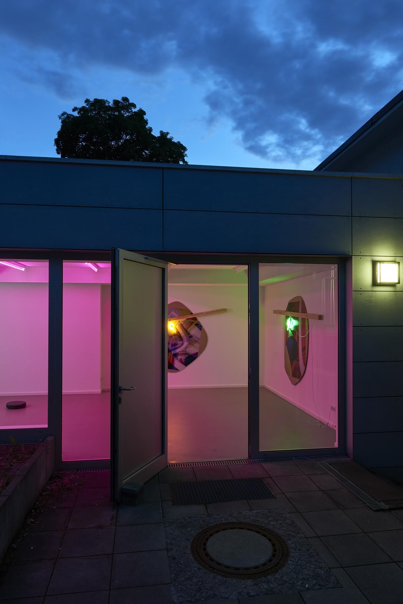 Bunt und verspielt, weich und hart, gestisch, konstruiert, programmiert und inszeniert In „Tangled Matter“ ist es ein transmedialer Prozess des Zusammen- und Übertragens, der zur digitalen Malerei, zum fotografischen Bild, zum Objet trouvé, zur Skulptur und Rauminstallation führt. diverse Materialien (Lambda Print, Acrylglas, Pressspan, MDF, LED-Leuchtmittel, Latten, Teppich, Vorhang, Staubsaugerroboter)