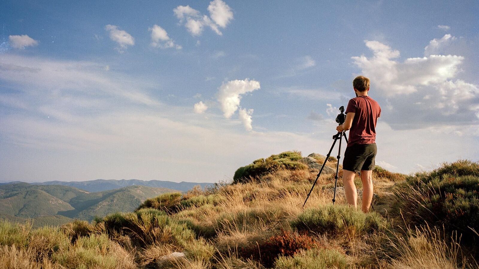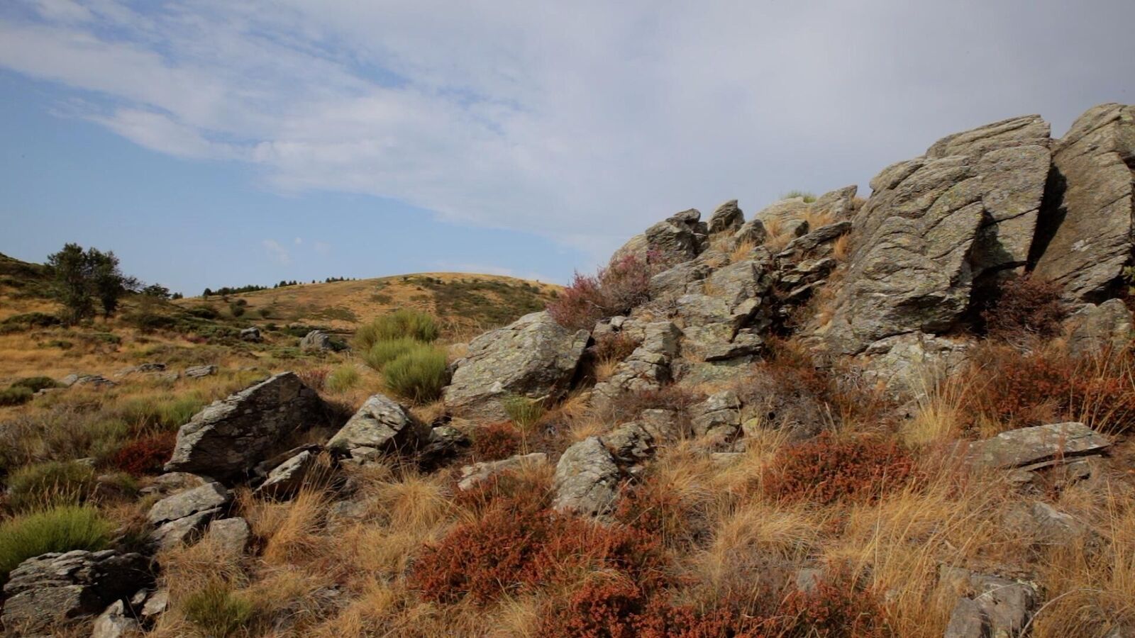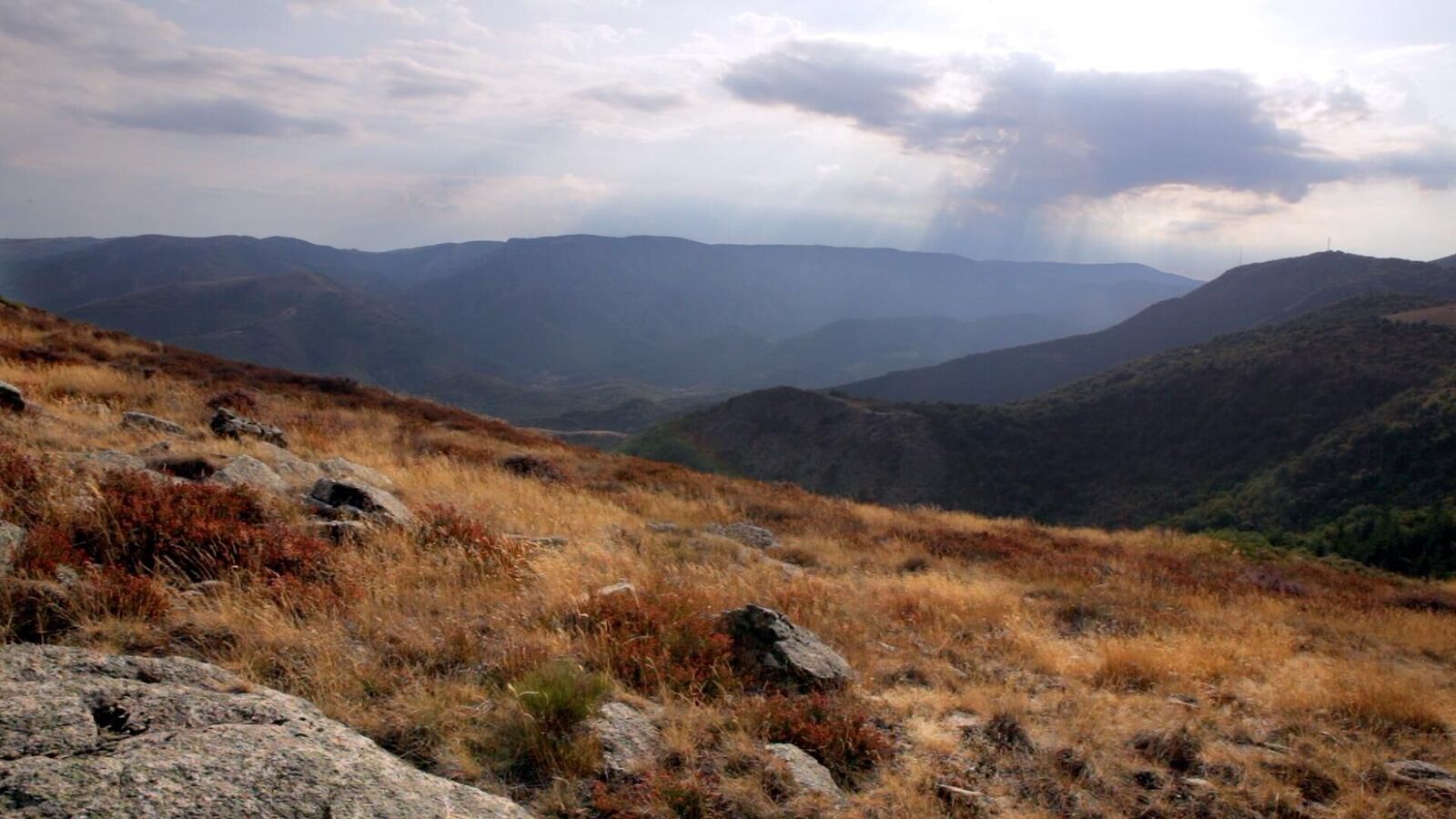 Der Film ""Aussichten"" zeigt Landschaftsaufnahmen der Cevennen auf einem einsamen Nachmittagsausflug des Filmemachers Simon Rupieper im Urlaub. Nahezu beiläufig beginnt er damit, seine Gedanken dazu auszusprechen.
