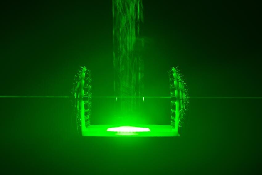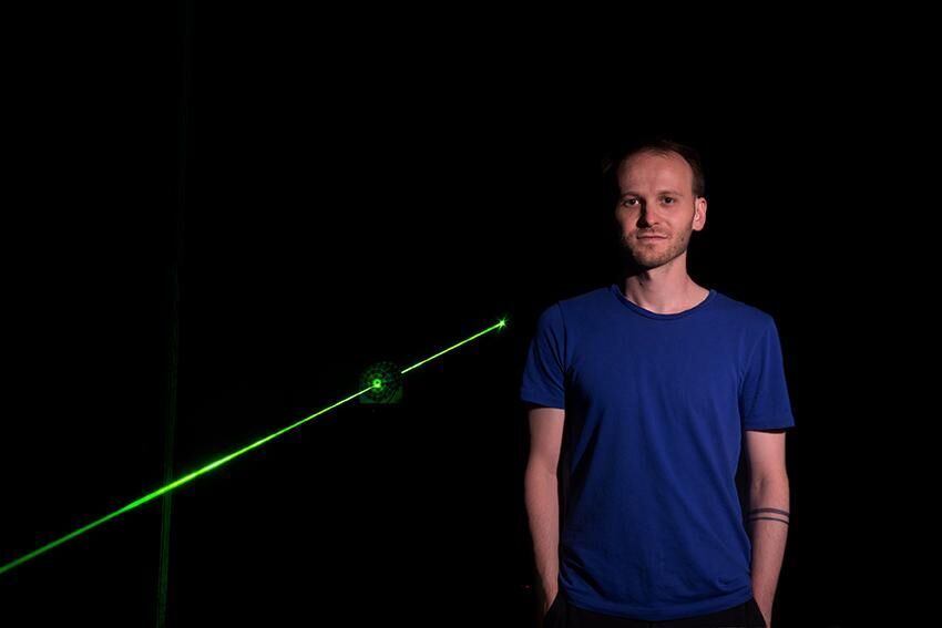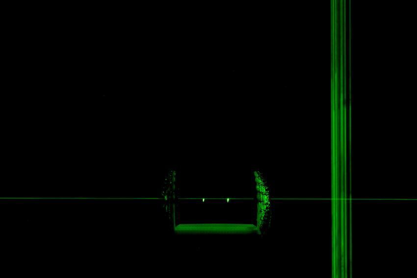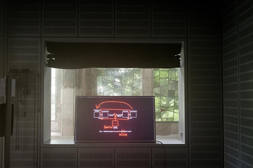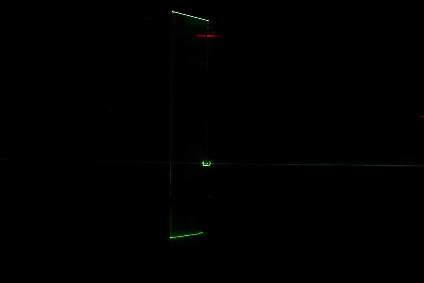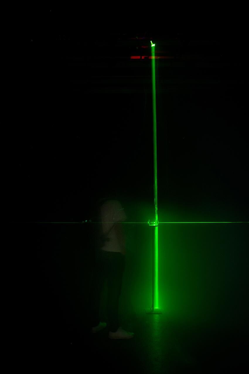 In dieser Sound- und Lichtinstallation wird Schall in Lichtwellen moduliert und wieder als Schall ausgegeben in einem Loop.