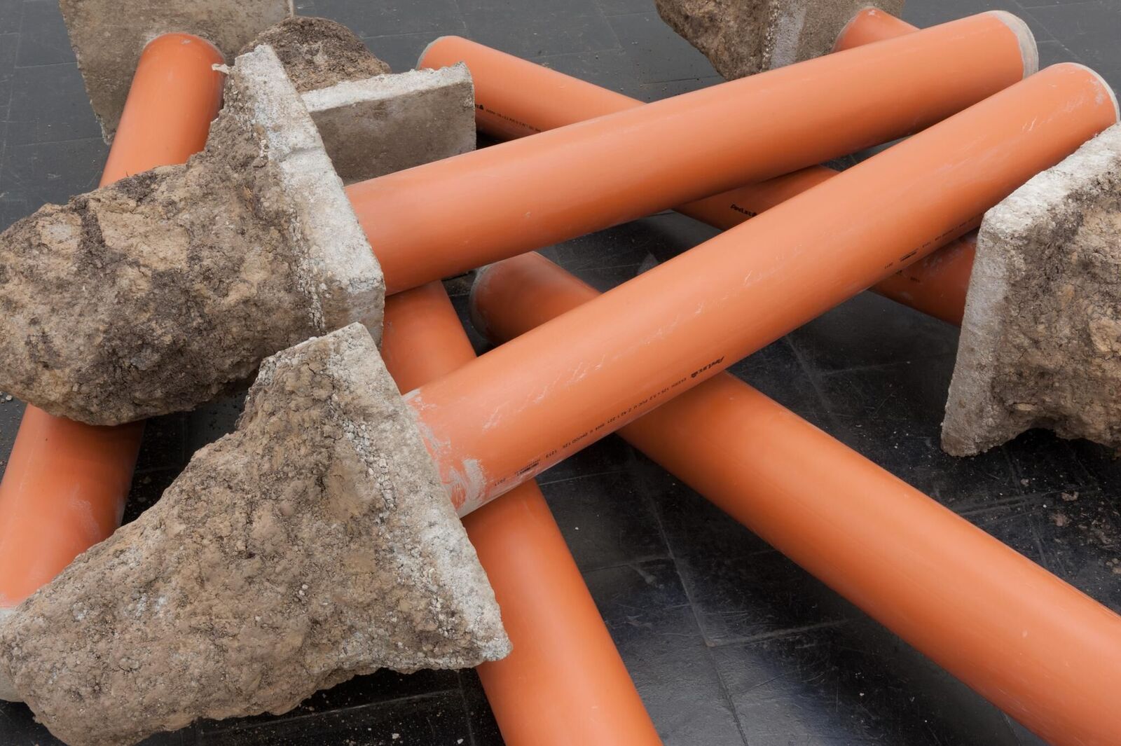 „Poller“ vollzieht eine archaische, aber durchaus übliche Methode zum Blockieren von Einfahrten nach. Zwischen Gehwegplatten werden Löcher gegraben, Abwasserrohre hineingesteckt und mit Beton gefüllt. Ohne ein Tiefbauunternehmen wird ein Eingriff in die Stadt durchgeführt. Private Interessen werden privat umgesetzt.