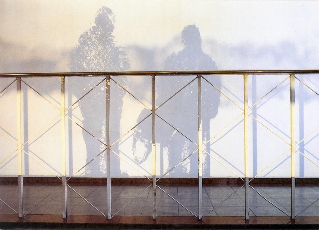 ""Übergang"" ist eine Arbeit zum Ausstellungsprojekt ""Schatten-Projektionen"", initiiert von Werner Nekes. Die Arbeit besteht aus zwei Tusche-Zeichnungen auf Glasplatten, die in einem Dia-Projektor hintereinander gestaffelt sind und auf eine Wand im Treppenhaus der städtischen Galerie Schloss Oberhausen projiziert werden. Durch Fokussierung erscheint eine Zeichenebene scharf, die andere diffus. In Zusammenhang mit dem Geländer ergibt sich ein eigenartiges Raumerleben zwischen projizierter Zeichnung, realem Objekt und dessen Schattenwurf. Zum Ausstellungsprojekt erschien ein Videokatalog und eine Postkarten-Edition.