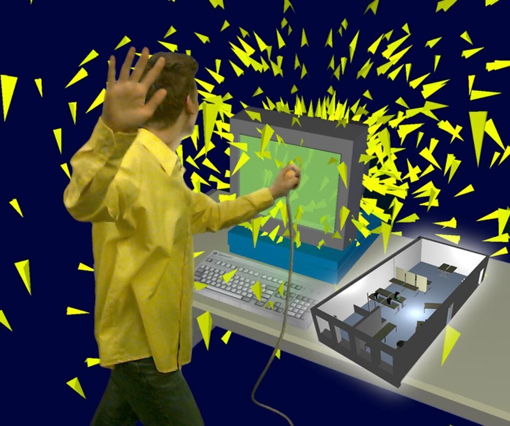 „Sustainable presence“ ist eine räumliche Visualisierung von Umweltparametern am Beispiel Elektrosmog. Die Forschungsergebnisse sind über eine Internet-Datenbank öffentlich zugänglich. Viele Umwelteinflüsse entziehen sich unserer direkten Sinneswahrnehmung; sie sind für den Menschen nicht erfahrbar. „Sustainable Presence“ macht abstrakte Daten anschaulich und vermittelt damit auf möglichst effiziente Weise die Grundlagen für ökologische Zukunftsstrategien. In der Virtual-Reality-Anwendung werden über elektronische Geräte das von ihnen produzierte elektromagnetische Feld eingeblendet. Der Benutzer navigiert durch den Raum und kann die Feldbelastung als räumliches Problem untersuchen. Mit einem Meßgerät und einer automatischen Positionsbestimmung (Bildanalyse) werden Felder von Computern und Bildschirmen ausgemessen. Aus den gewonnenen Daten werden die dreidimensionalen Visualisierungen erzeugt.