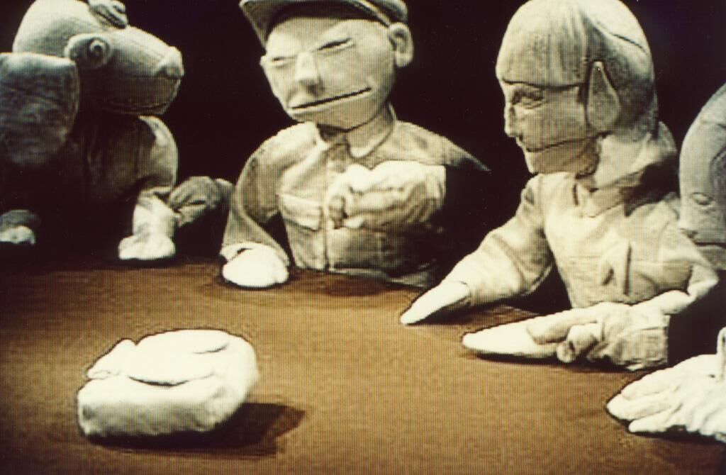 Die Installation „Monokroms, EntwederOder“ besteht aus einem Monitor, eingelassen in eine Fernsehkommode, auf dem eine laufende Diskussion zwischen vier Puppencharakteren zu sehen ist. Gegenüber steht ein Couchtisch, dessen Oberfläche eine Glasscheibe bedeckt. Unter ihr befindet sich ein Lageplan mit kurzen Titeln zu verschiedenen Geschichten. Auf dem Tisch steht eine Spielfigur. Gruppiert um den Tisch stehen eine Reihe kleiner Klapphocker. Mittels der Spielfigur in Form eines miniaturisierten Fernsehturms können die Zuschauer von dem Couchtisch aus diese Geschichten anwählen und gemeinsam mit den Puppen verfolgen. Die Puppen wiederum reagieren auf die Geschichten und versuchen sie auf ihre Weise in ihren Diskurs einzuschleifen. Solange man die Spielfigur nicht bewegt, verfolgen die Puppen ihre eigene Diskussion. „Monokroms“ ist ein interaktiver Film darüber, wie Erfahrungen – ob unmittelbare oder vermittelte – unsere Art zu Denken konstituieren, und wie einmal erworbene Vorstellungen unsere Rezeption beeinflussen. Der Film spielt auf zwei ineinander verzahnten Ebenen: einer diskursiven, in der die vier Puppencharaktere („Arbeiter“, „Mädchen“, „Hund“ und „Mrs. Spock“) ihre Herkunft und Karriere diskutieren und Fragen wie „Popularisierung-oder-Hebung-des-Niveaus?“ oder die geheime Sehnsucht, nach Transzendenz mit der Forderung nach Aufklärung unter einen Hut bringen zu können, besprechen. Die zweite Ebene stellt dieser Diskussion 29 Geschichten aus der Welt gelebter Erfahrung gegenüber, in denen sich modellhaft und idealisiert die Themen der Diskussion widerspiegeln. Das Mobiliar, halb Fernsehschrank und Wohnzimmergemütlichkeit, halb Kasperltheater für ein „kleines“ Publikum, verleiht trotz aller Vertrautheit auch Distanz. Der konstruierte Widerspruch zwischen Inhalt und Form, Kontext und Situation, Reduktion und Narration wird dazu eingesetzt zwei Bedürfnisse gegeneinander auszuspielen: das spontane Bedürfnis sich auf die Charaktere und ihre Geschichten einzulassen, sich zu engagieren, gegen den Kontext bedingten Wunsch nach Distanzierung, Formalisierung und interesselosem Wohlgefallen.