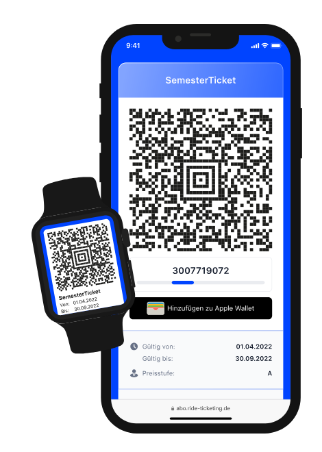 The Deutschlandticket is valid for the duration of the semester, i.e., from April 1 to September 30 or from October 1 to March 31. The message disappears automatically on the first day of validity. The ticket cannot be downloaded to the wallet before it becomes valid.