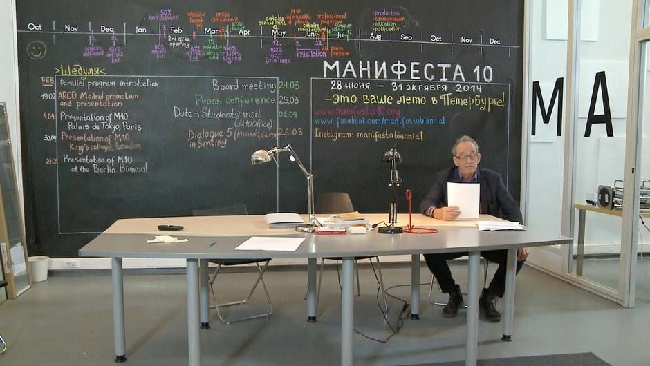 Irene Langemann pendelte in den letzten Monaten regelmäßig zwischen Köln und St. Petersburg. Ihr neuer Film begleitet Kasper König bei der Entstehung der MANIFESTA 10 Ausstellung im Hauptmuseum Russlands, der weltberühmten Eremitage. Als er zum Kurator der europäischen Biennale in St. Petersburg gewählt wurde, ahnte er nicht, in welchen politischen Hexenkessel er sich begab. Aufgrund der neuen homophoben Hysterie, des Russland-Ukraine Konflikts, der Annexion der Krim und der fortdauernden Intervention zur Destabilisierung der Ukraine, wurde von prominenten Künstlern zum Boykott der vor einigen Jahren geplanten Ausstellung aufgerufen.