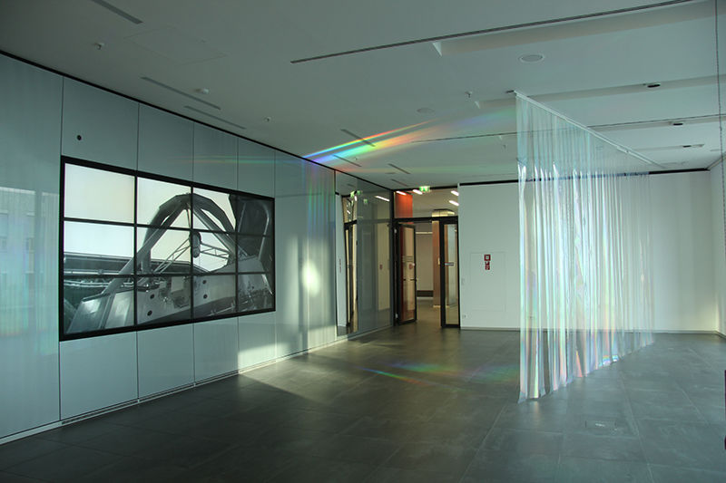 In einer Installation in der Raummitte (Spektraler Korridor, 2014) setzt die Künstlerin Spektralfolie ein, um die farbigen Bereiche des Sonnenlichts sichtbar zu machen. Zwei Vorhänge aus bodenlangen Lamellen dieser Folie bilden einen Gang, in dem der Besucher selbst Teil dieses Lichtspiels und gleichsam zu einer Interferenz innerhalb eines optischen Systems wird. Diese künstlerische Arbeit ist allerdings kein Ausspielen von Natur gegen Technik, sondern ein spielerisches Umformen von naturwissenschaftlichen Phänomenen, die durch die Bewegung der Besucher im Raum erst aktiviert und auf einem Spiegel an der gegenüberliegenden Wand verstärkt werden.