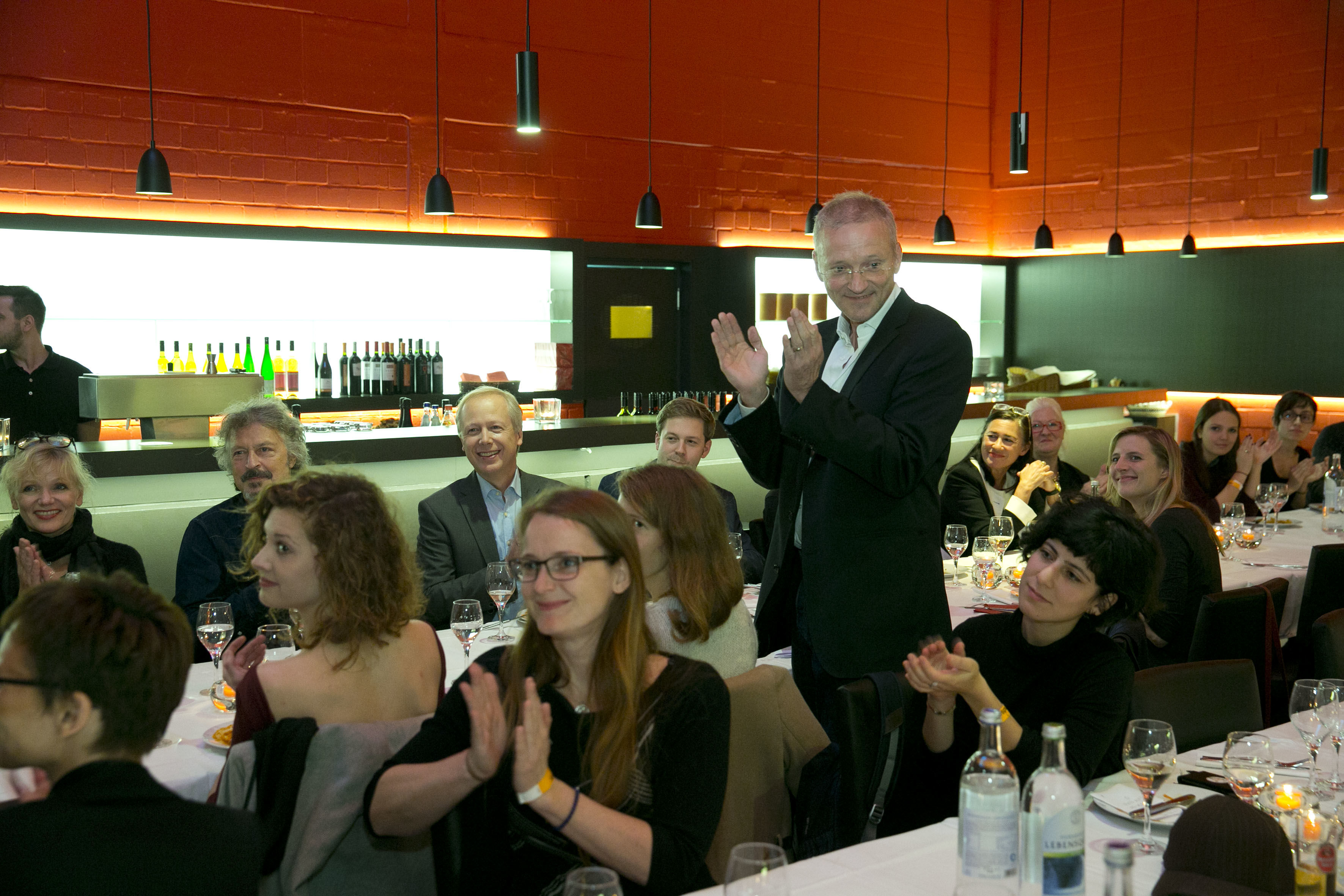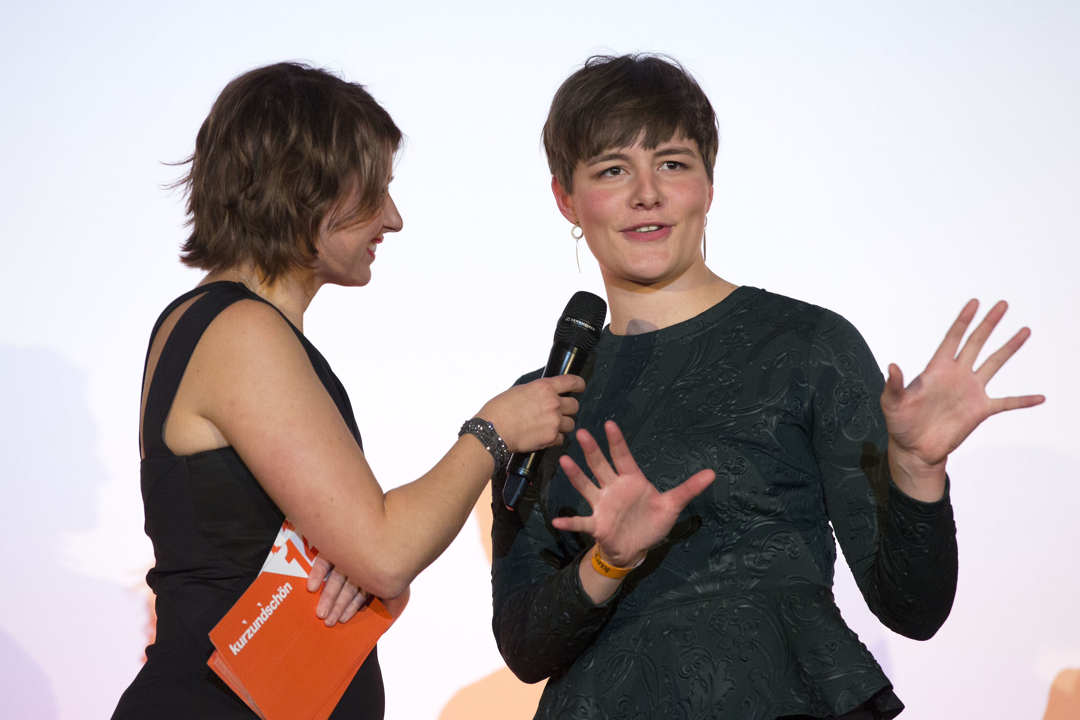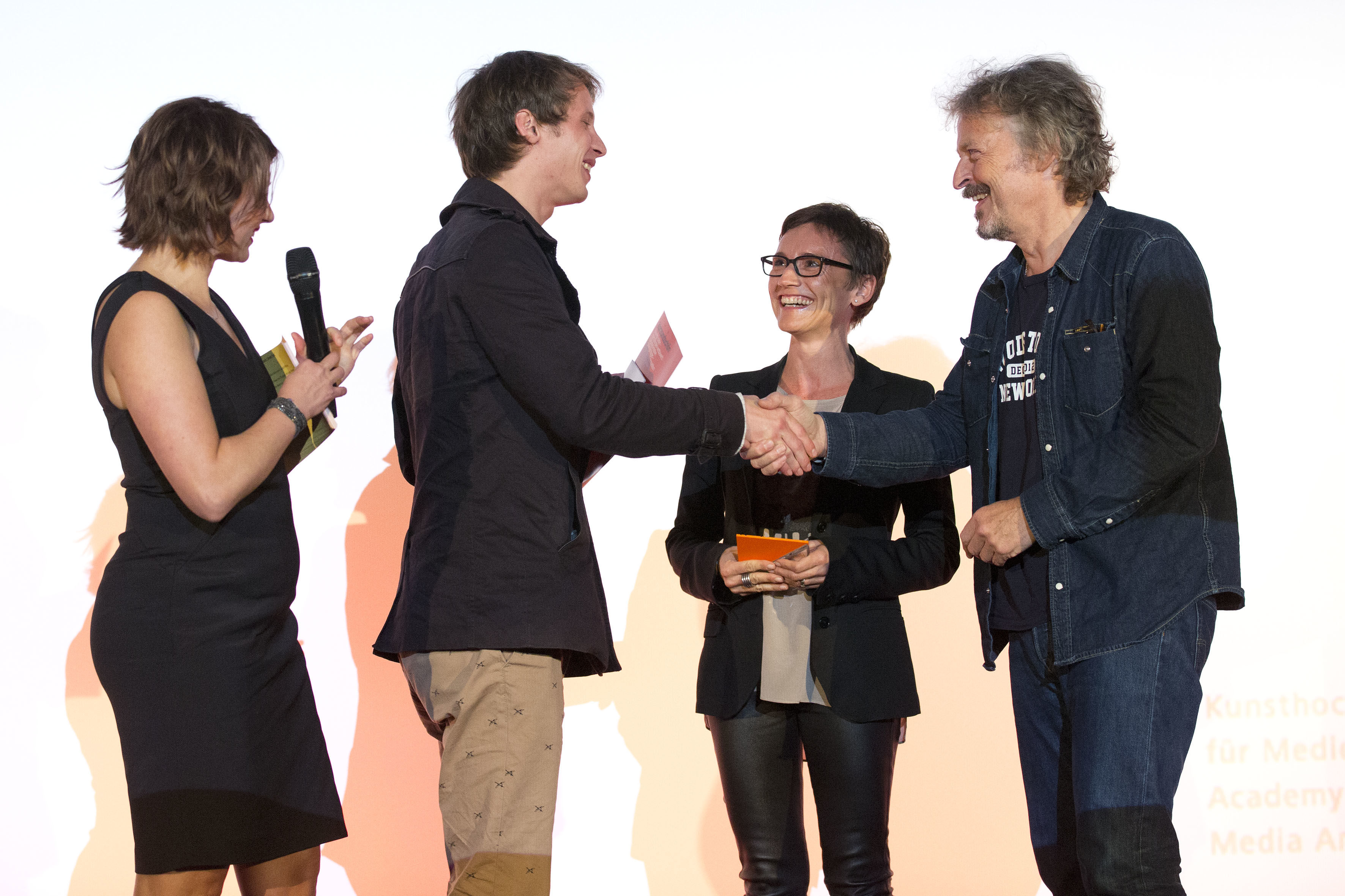 WDR-Intendant Tom Buhrow, BAP-Frontmann Wolfgang Niedecken, Dr. Ralf Heinen, Bürgermeister der Stadt Köln und Steffen Simon, WDR Sportchef, agierten als Preispaten bei verschiedenen Preisträgerinnen und Preisträgern, die aus 430 eingereichten Filmen und Projekten als ganz besonders hervorgegangen waren. Ein Crossover von Gattungen und bewegten Bilder unter 15 Minuten – Kurzspielfilm, Kunstfilm, Animation, Socialspot, Imageclip, Plublic Art oder Miniclips ohne Ton für Infoscreens – fand seinen bewegenden, feierlichen Abschluss und offenbarte die wunderbare Bandbreite der Begabungen, die an europäischen Ausbildungsstätten studiert.