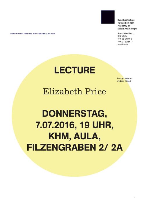 London based visual artist and Turner Prize winner in 2012, Elizabeth Price will present two of her digital video works, THE WOOLWORTHS CHOIR OF 1979 (18 min, 2012) as well as the two screen HD video installation K (7 min, 2015) and talk about her artistic practice. She will also hold a workshop based on the song as a collective and political artistic expression. A program hosted jointly by the Academy of Media Arts Cologne (KHM) and the University of Cologne (Institute for Art and Art Theory / Labor für Kunst und Forschung).
