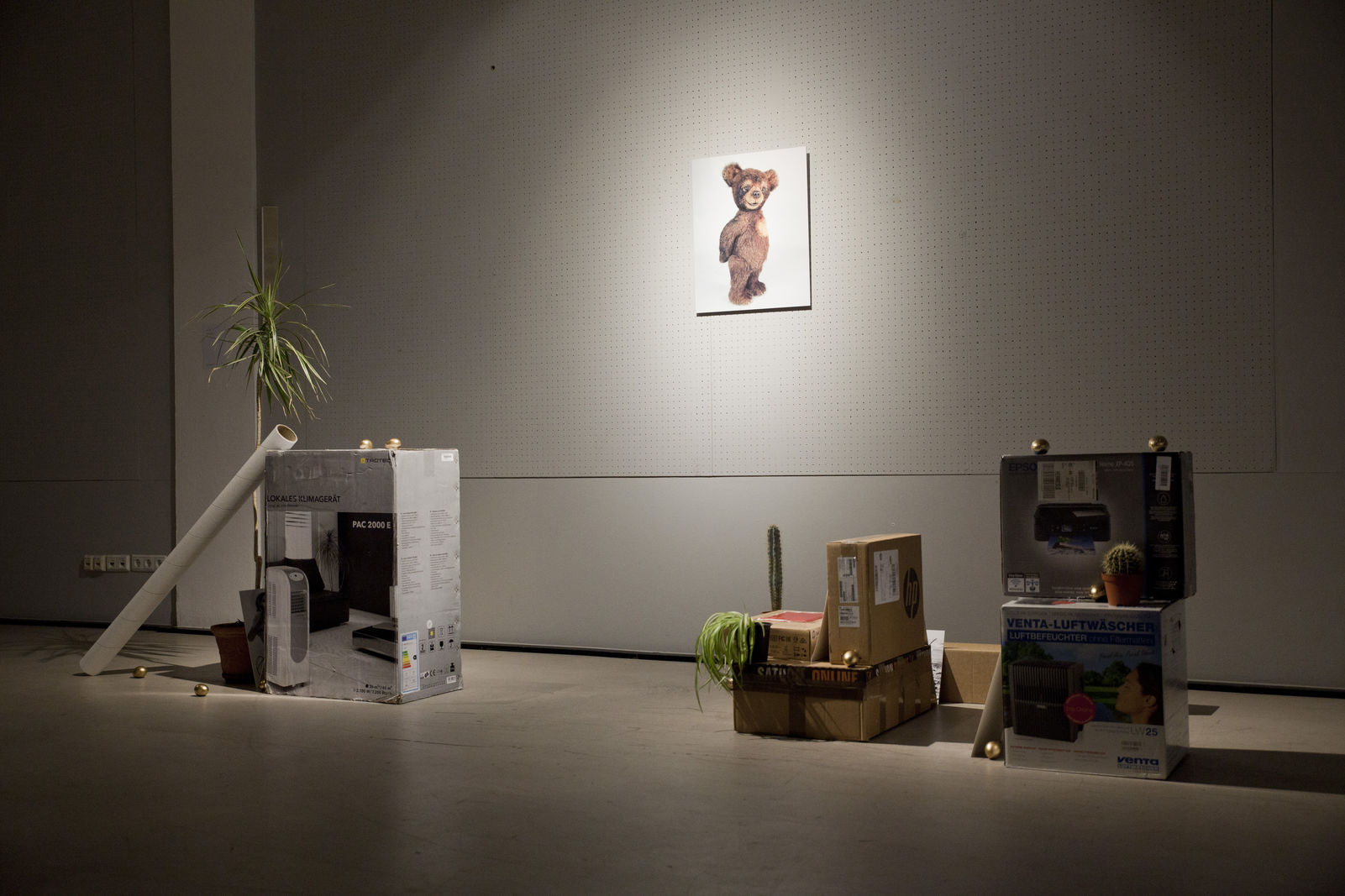 Lei Xi (geb. 1989 in Jiangsu, seit 2014 Studium an der KHM) „befasst sich in seinem Werk mit Objekten, Medien und Relikten, die sowohl Analogien in ihrer Geschichte, als auch ein Archiv bilden und bringt diese auf originäre Weise zusammen. … In ‚Wintergarten’ akkumuliert der Künstler Waren, deren Funktion und Oberfläche er durch Enthüllen und Verbergen kulturell hinterfragt.“