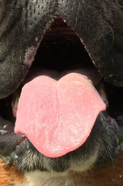 Das kurze, im Loop laufende Video Dash #02 stammt aus einer mehrteiligen Serie mit Nahaufnahmen von Hundezungen. Der Ton dieses stakkatoartigen Hechelns wird über Lautsprecher in den Raum übertragen, so dass die Rezipient*innen ganz und gar dem Rhythmus eines fremden Lebewesens ausgesetzt werden. Das scheinbar Vertraute wirkt durch solch eine Erfahrung nicht mehr ganz so vertraut.