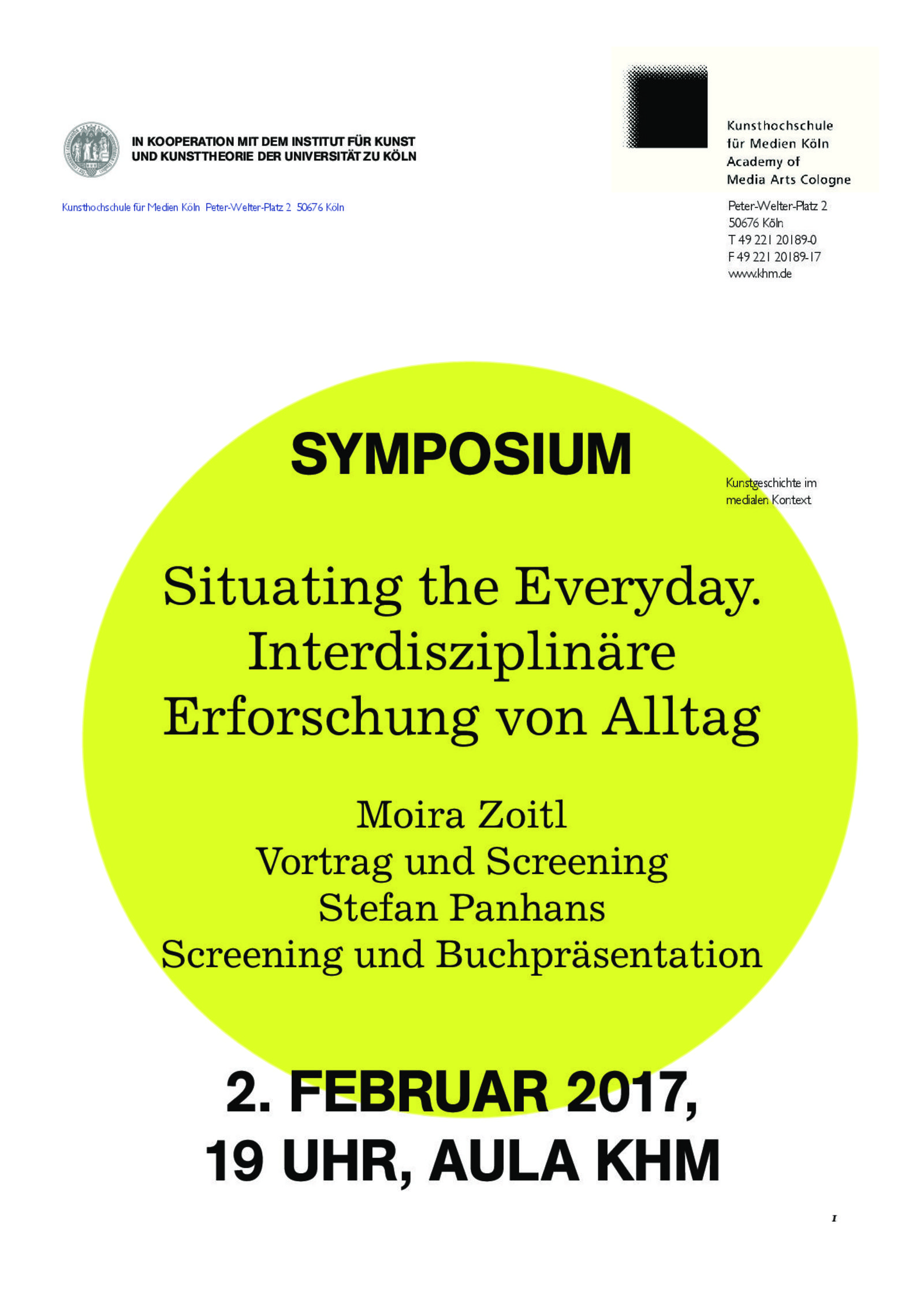 Im Rahmen des Symposiums, dass als Abschluss des seit drei Semestern andauernden Projekts Mass Observation 2.0 – Research into the Everyday stattfindet, ist es unser Anliegen, KünstlerInnen, Researcher sowie Studierende der Universität zu Köln und der Kunsthochschule für Medien Köln zusammen zu bringen, und unser Verhältnis zum Alltag aus unterschiedlichen wissenschaftlichen und medialen Perspektiven zu befragen.